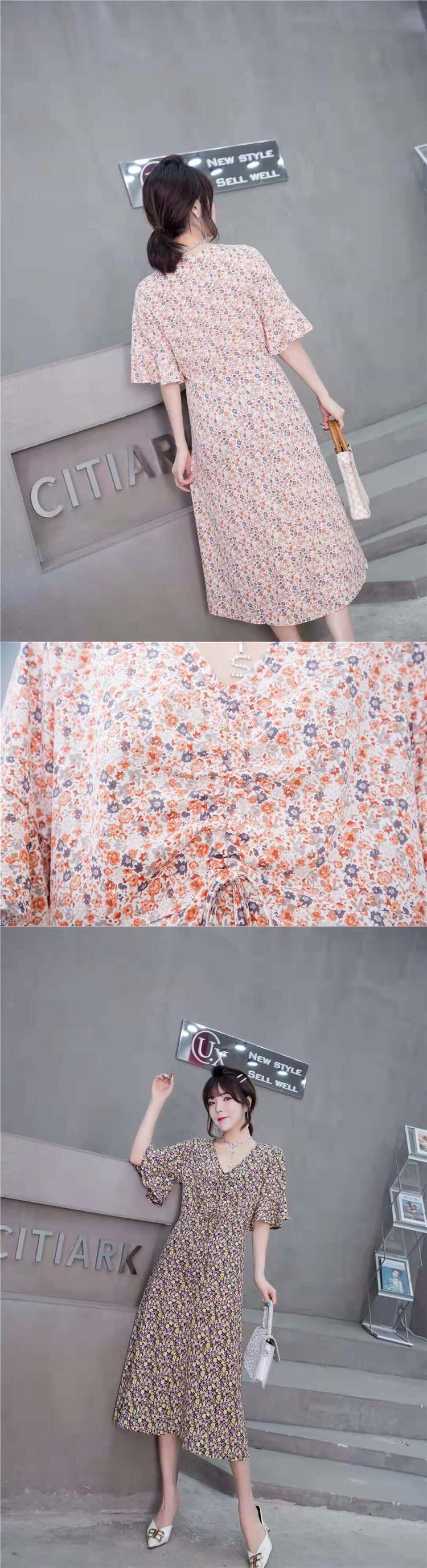 スカート Vネックギャザーウェストフローラルドレス レッド 大きめサイズ 花柄 ミックスインファッション39438163271