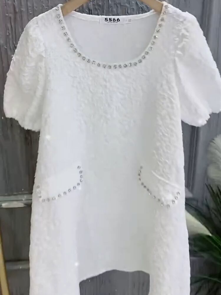 ラウンドネックダブルポケットプリーツスリーブドレス 大きめサイズ 大人ガーリー スウィート キュート カジュアル Oネック ヨーロピアン ミックスインファッション22872991501