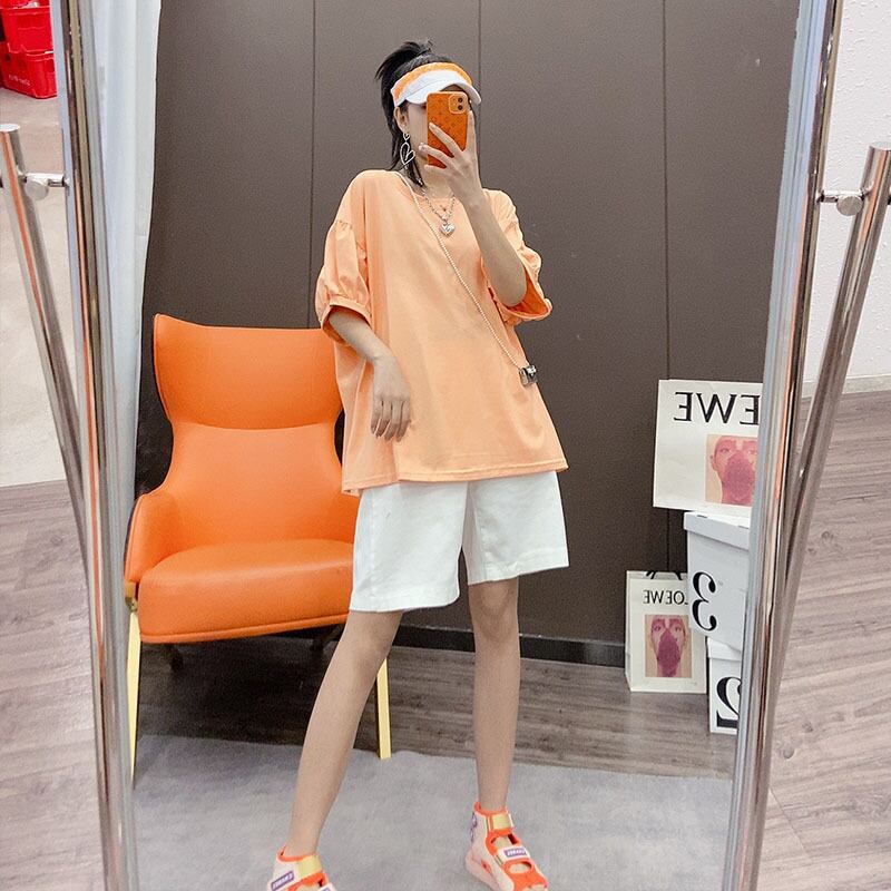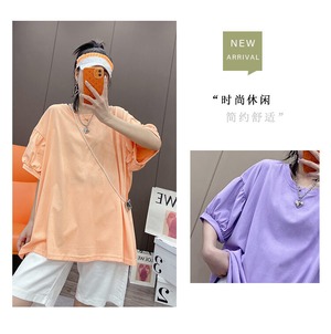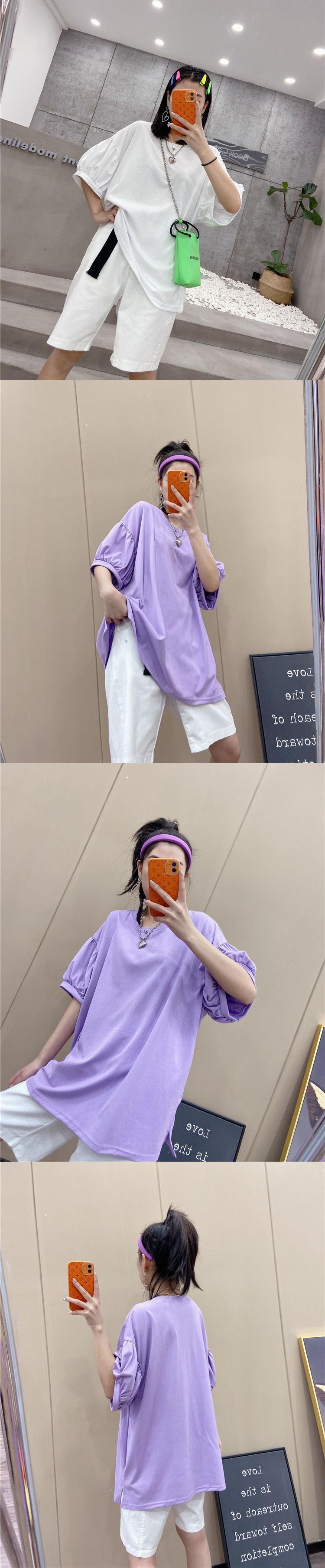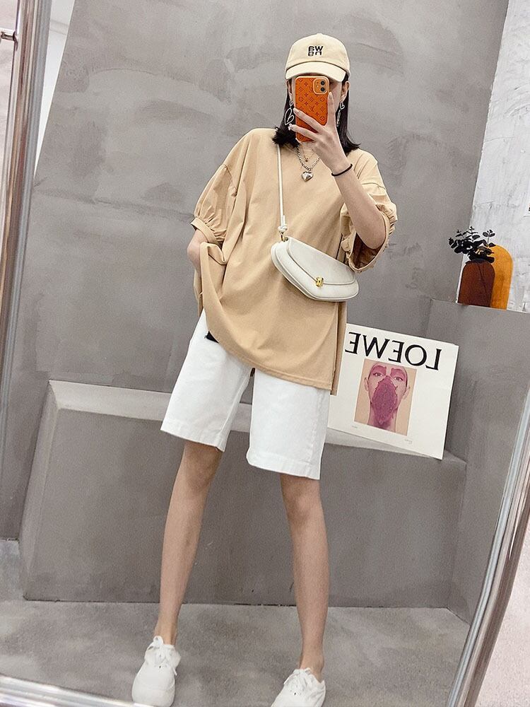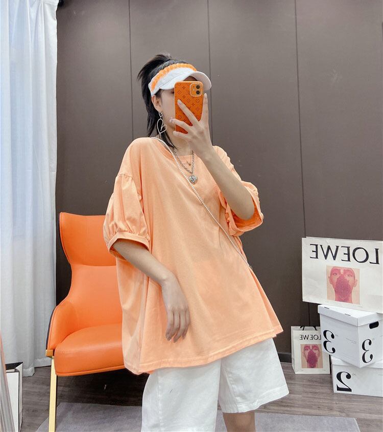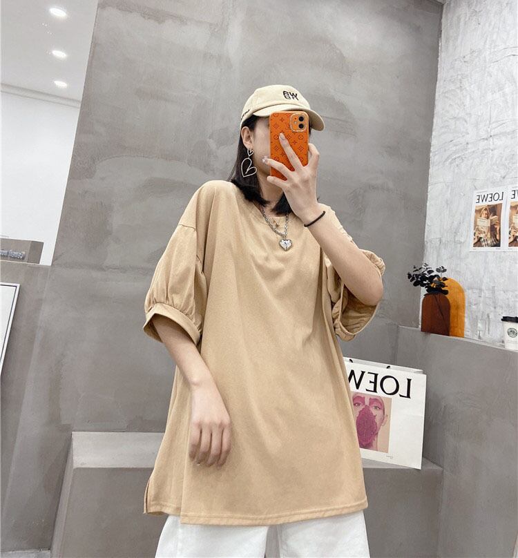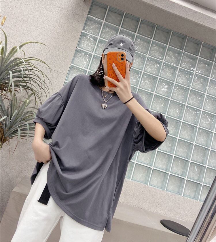 ラウンドネックプルオーバー ルーズTシャツ ブラウス Oネック ミックスインファッション17234042901