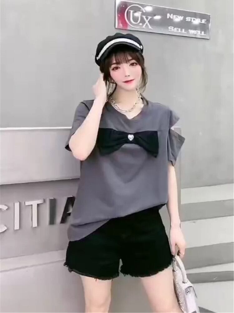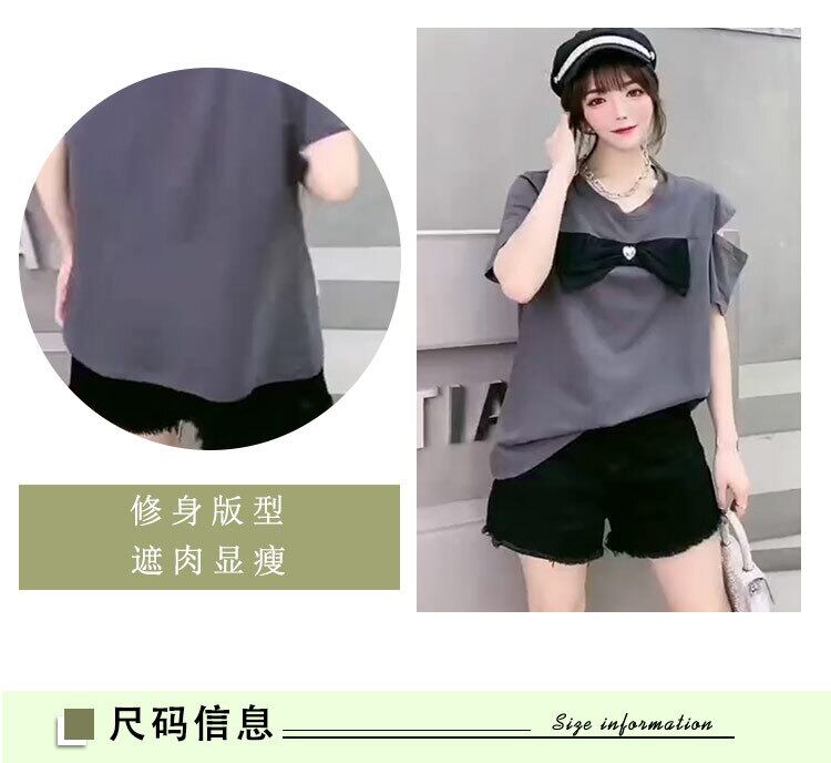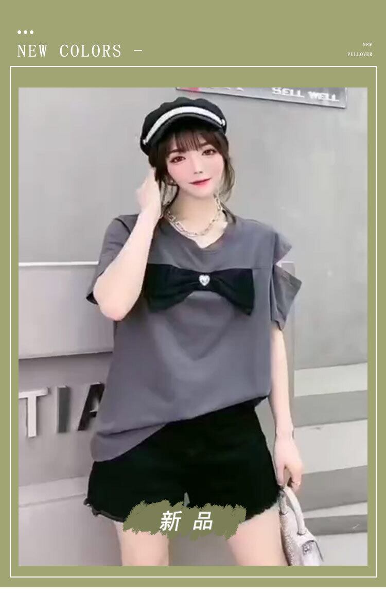 ラウンドネックストラップレスシャツ サマーリボン 大きめサイズ 大人ガーリー スウィート キュート カジュアル 夏物 Oネック ミックスインファッション30355328994