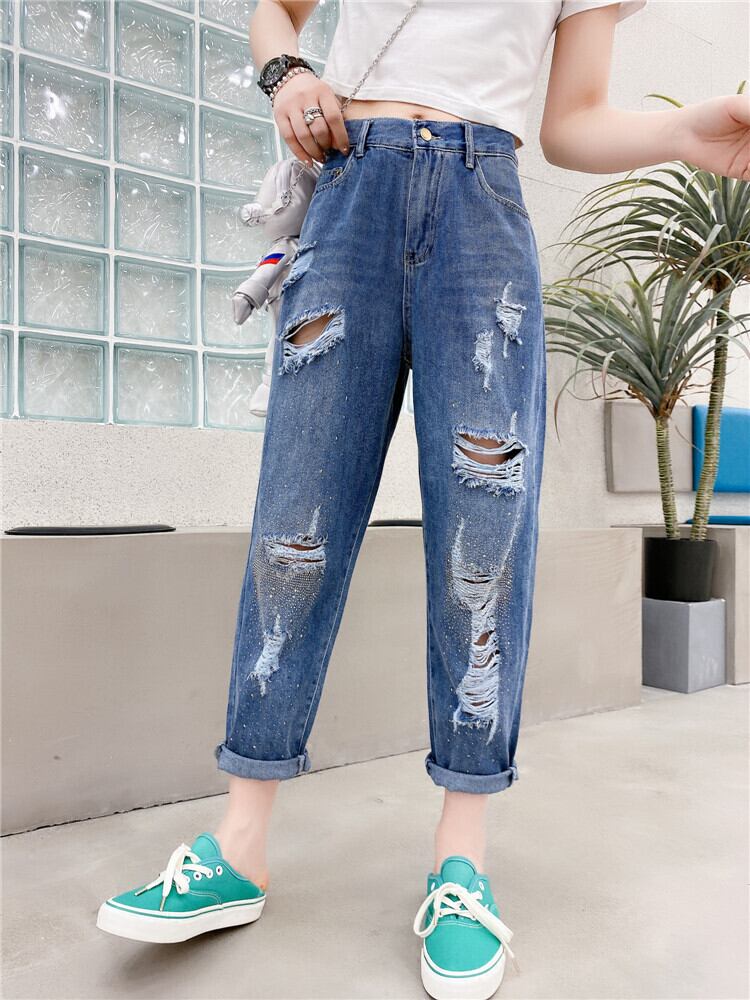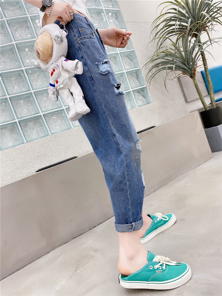 ハイウェストクロップドスリムカジュアルジーンズ 大きめサイズ ミックスインファッション79364641404