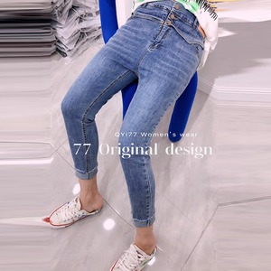ジーンズ サマーハイウェストウェストスリムパンツ 大きめサイズ 夏物 ミックスインファッション52132362696