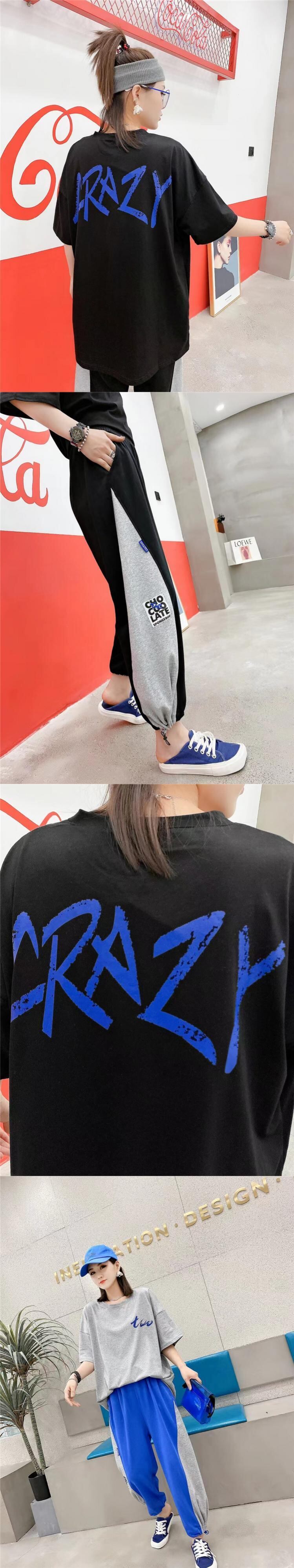 ラウンドネックTシャツ ルーズサマーギャザー 大きめサイズ 夏物 Oネック ステッチ ミックスインファッション4213895403