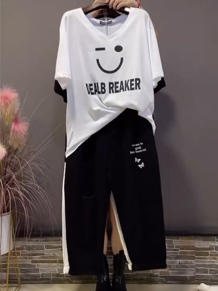 スプリングサマールーズTシャツ シャツ トップス カジュアルパンツ 大きめサイズ 春物 夏物 ミックスインファッション92807775450