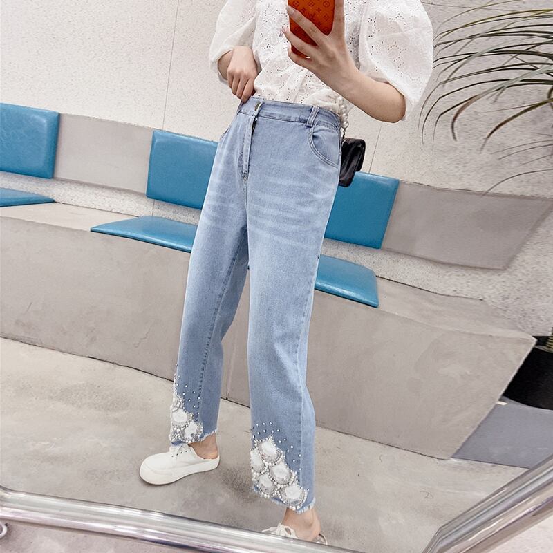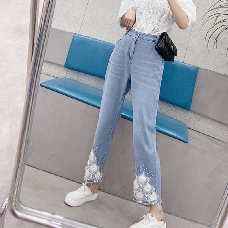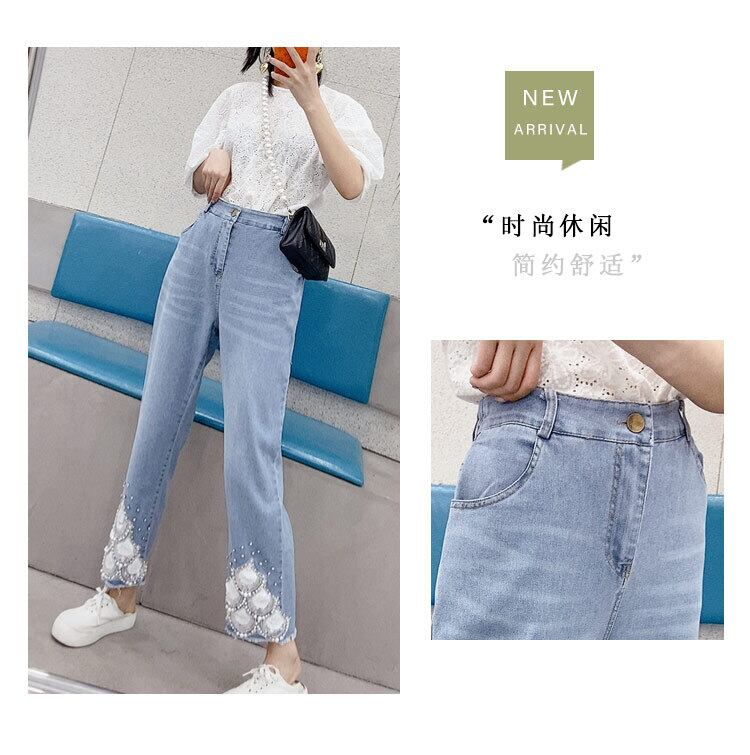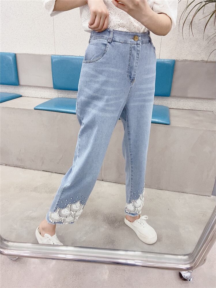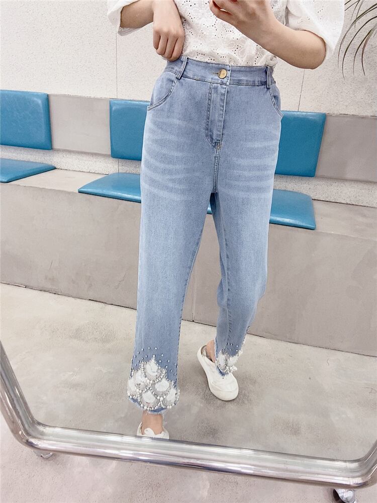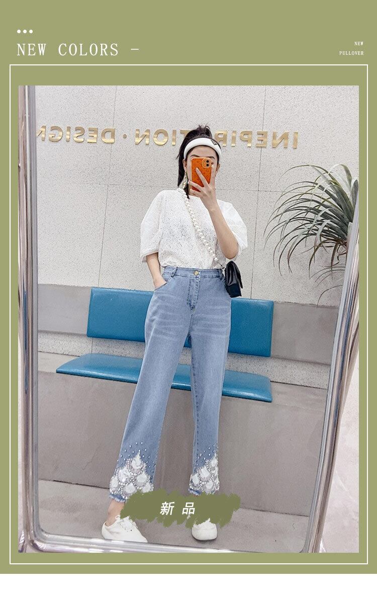 サマー薄手ルーズレースジーンズ 大きめサイズ 夏物 ミックスインファッション31203013784