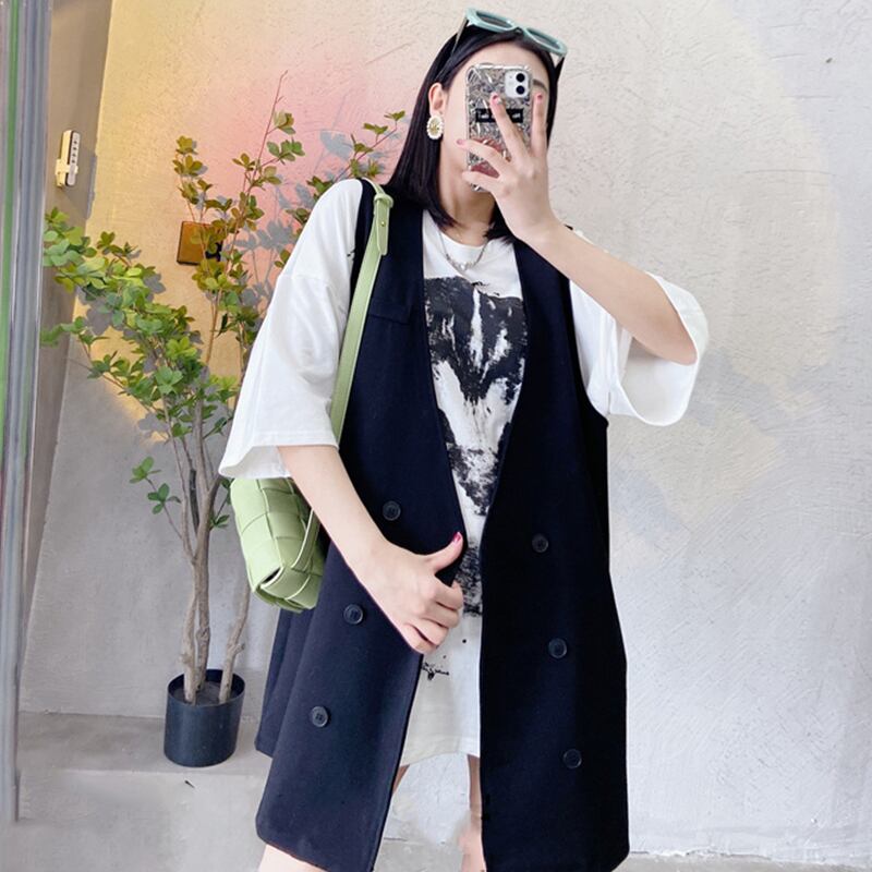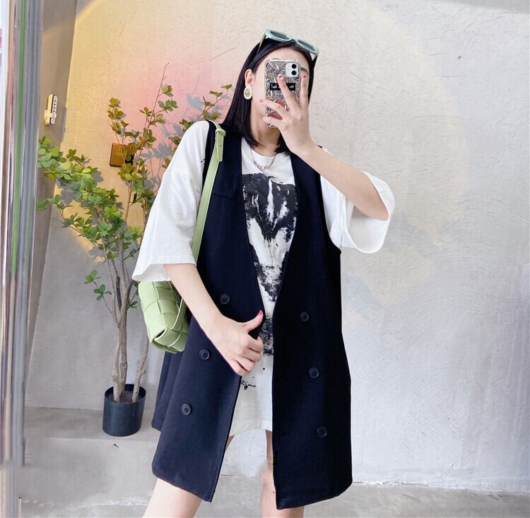 ジャケット ロングノースリーブダブルボタンルーズ 長袖 大きめサイズ ミックスインファッション890565980