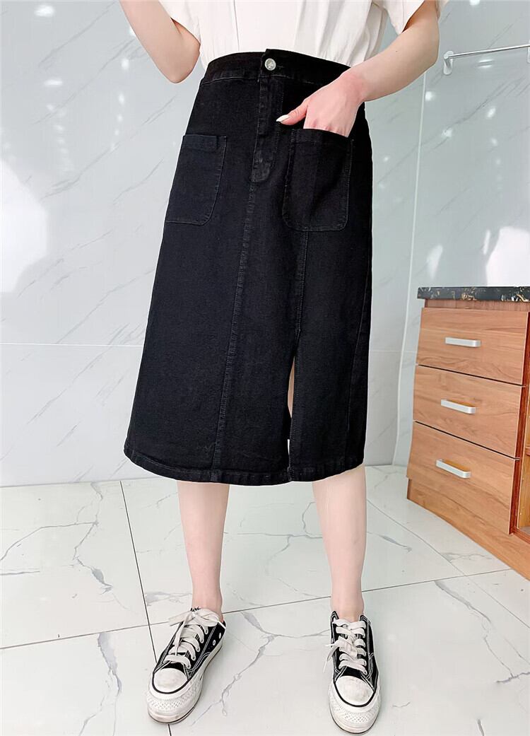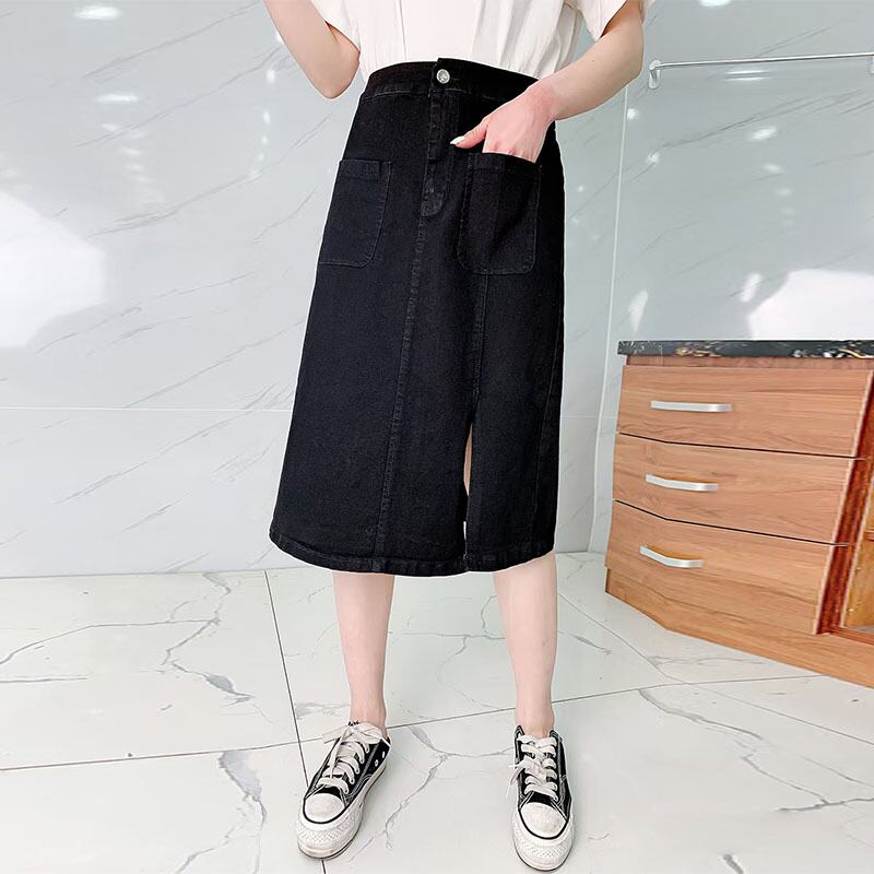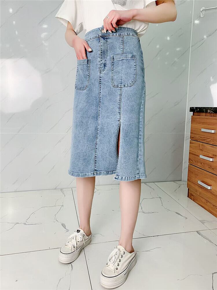 スカート スリットダブルスプリングサマーAラインハイウェストウェスト 大きめサイズ 春物 夏物 ミックスインファッション86112931655