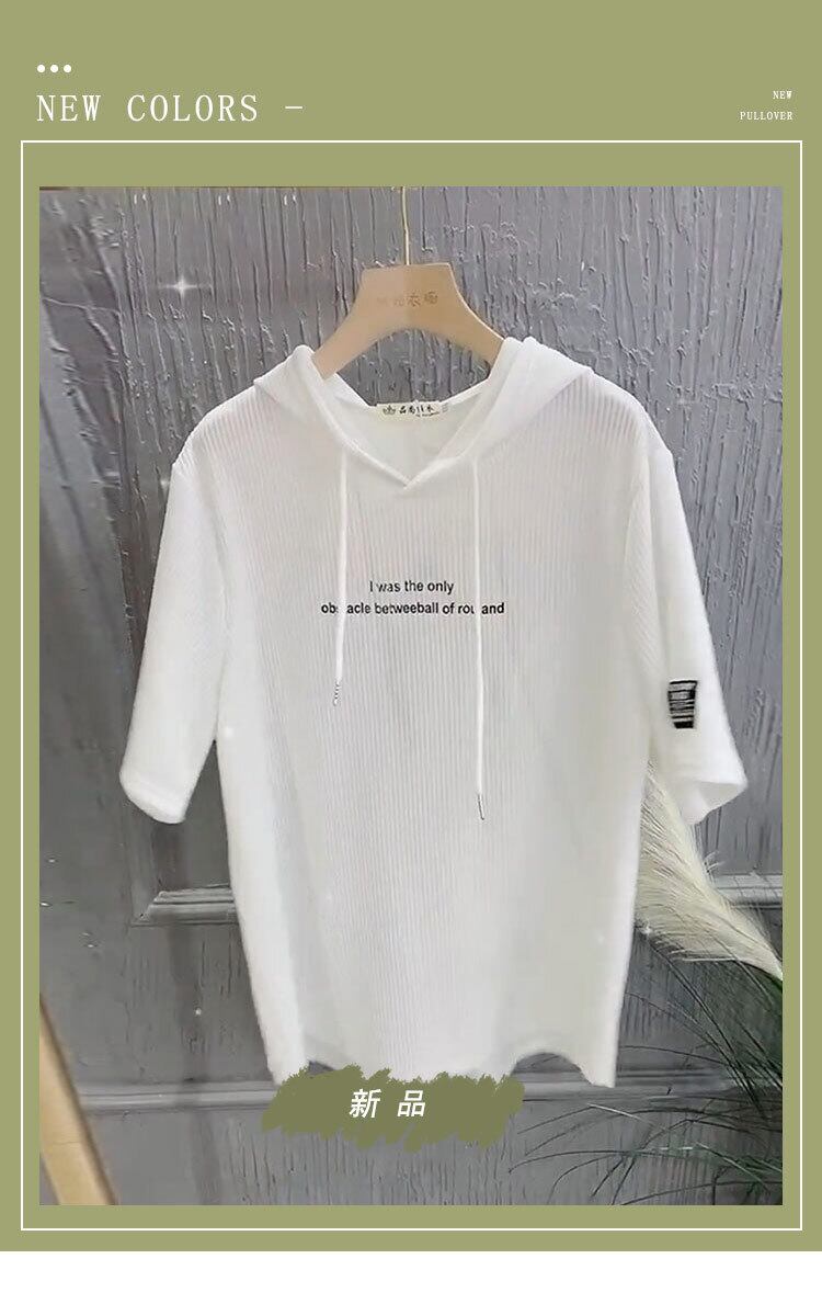フードストライプカジュアルTシャツ シャツ サマールーズ 夏物 ミックスインファッション18068579740