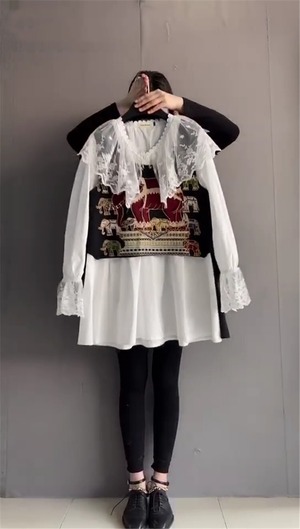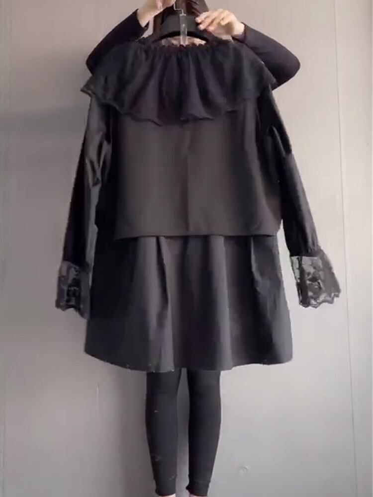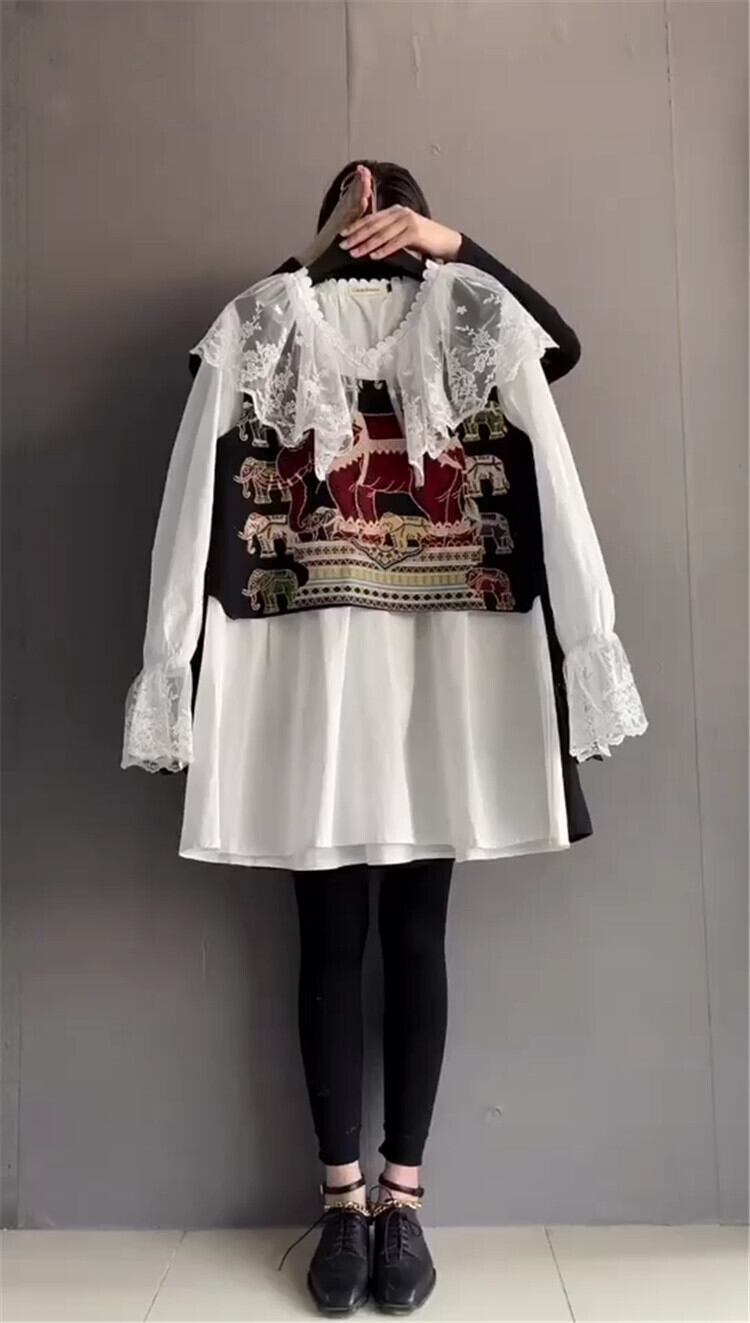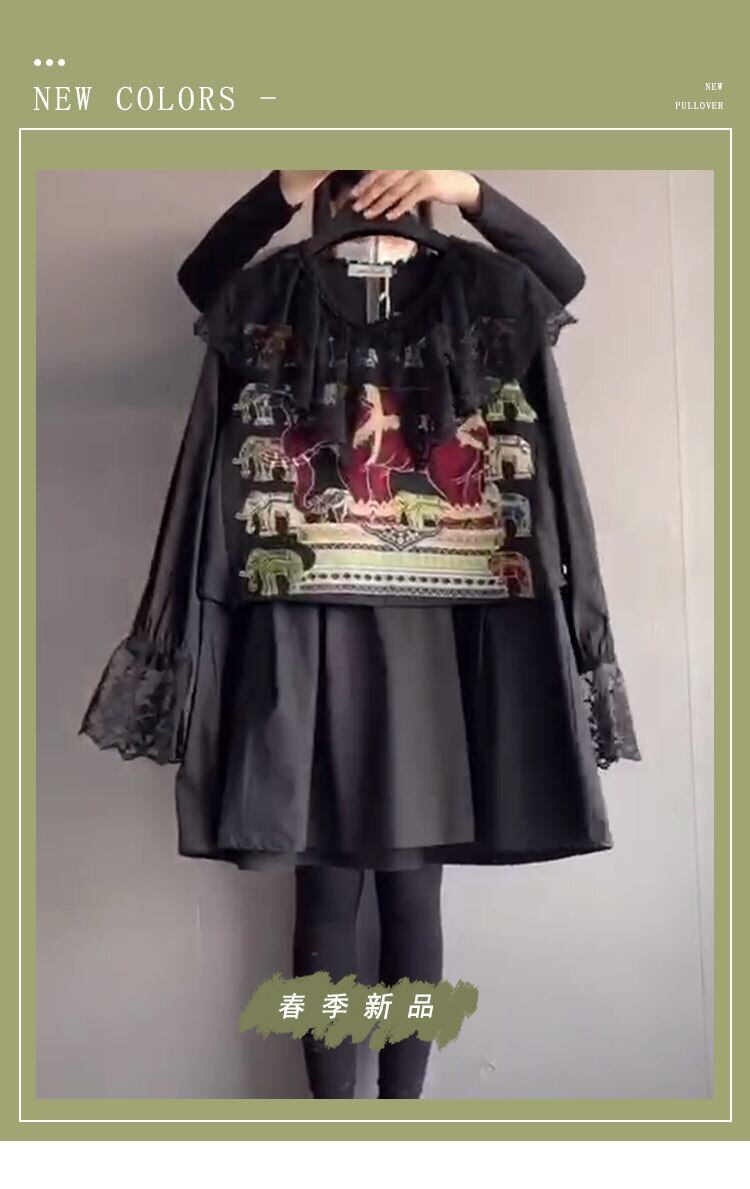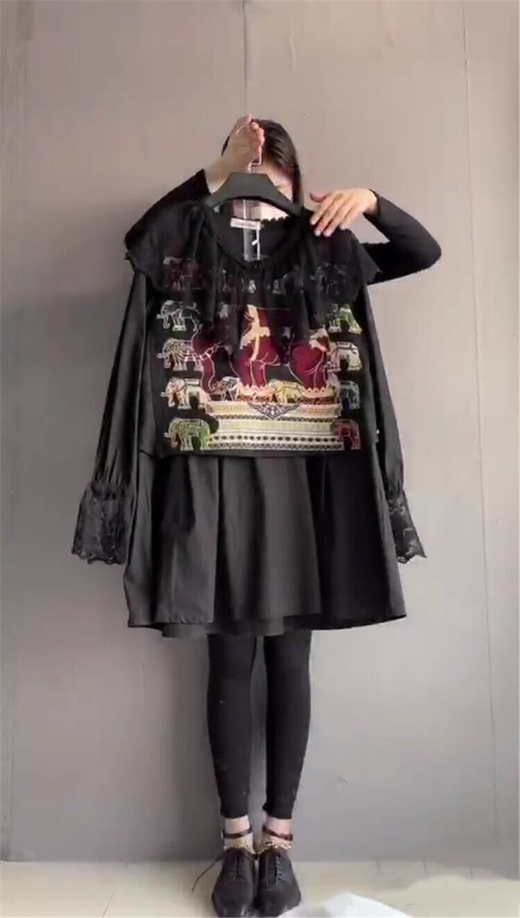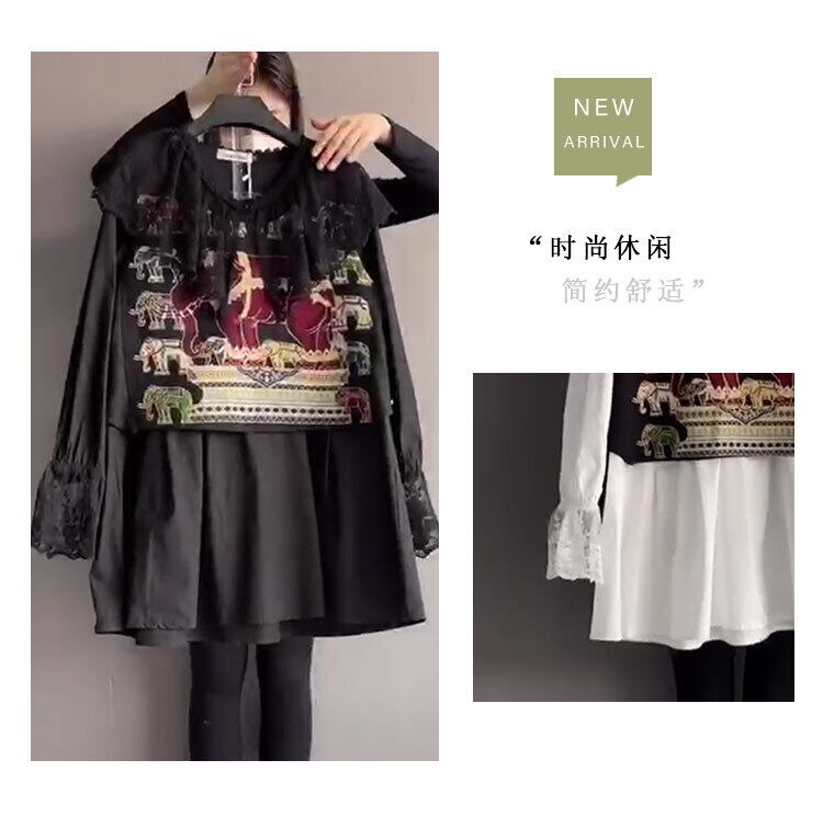 メッシュレースパターンシャツ スプリングトップス ロング 大きめサイズ 春物 ステッチ ミックスインファッション70837156018