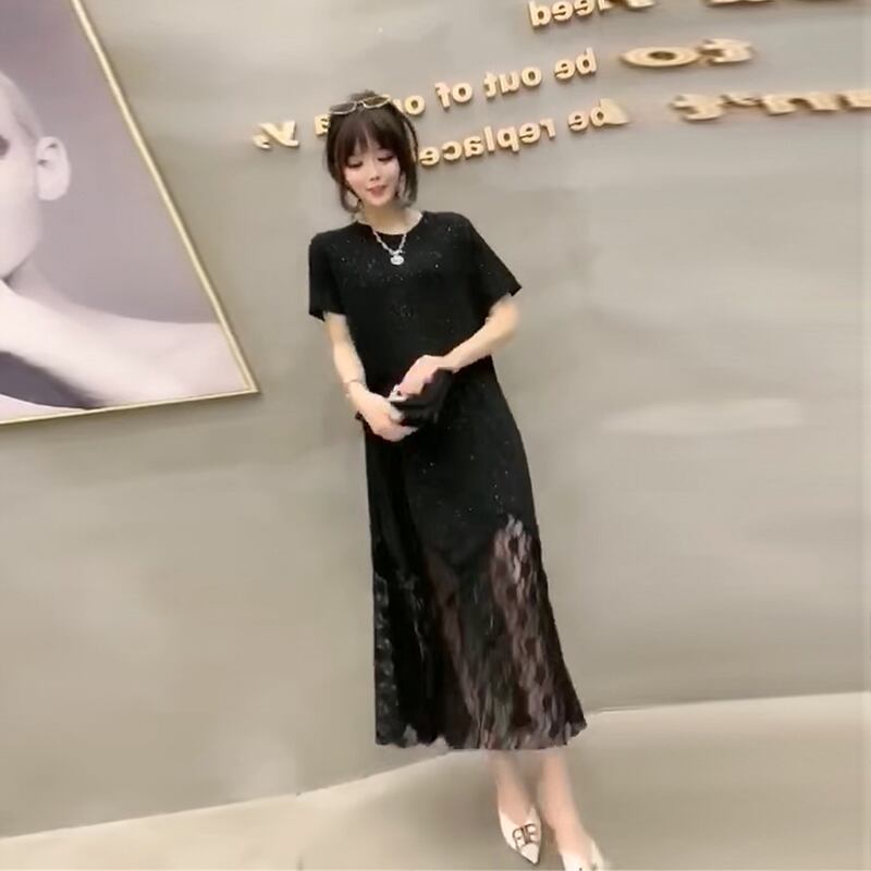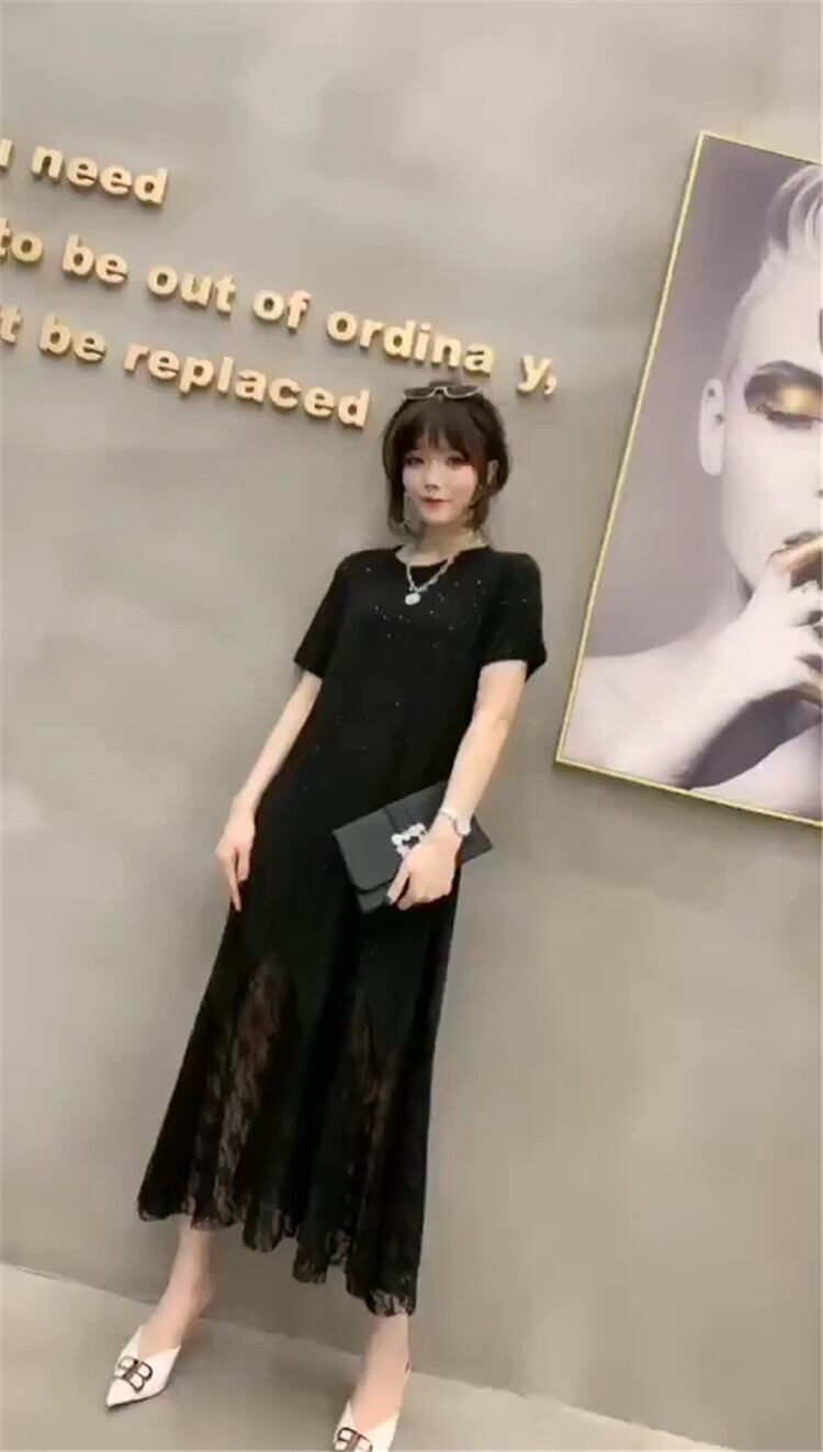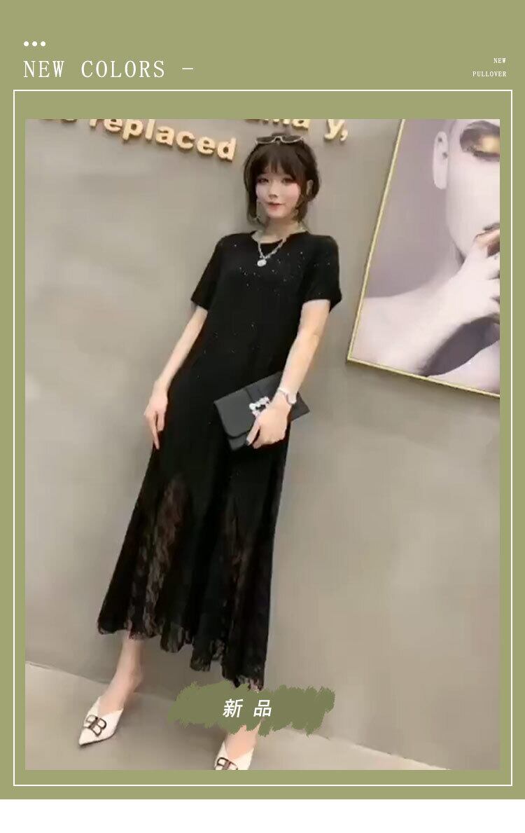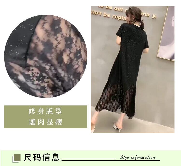 サマースタイル薄手ラウンドネックレースドレス 大きめサイズ 夏物 Oネック ステッチ ミックスインファッション81516788410