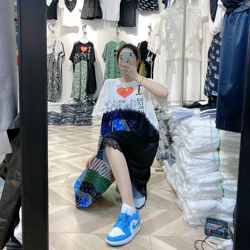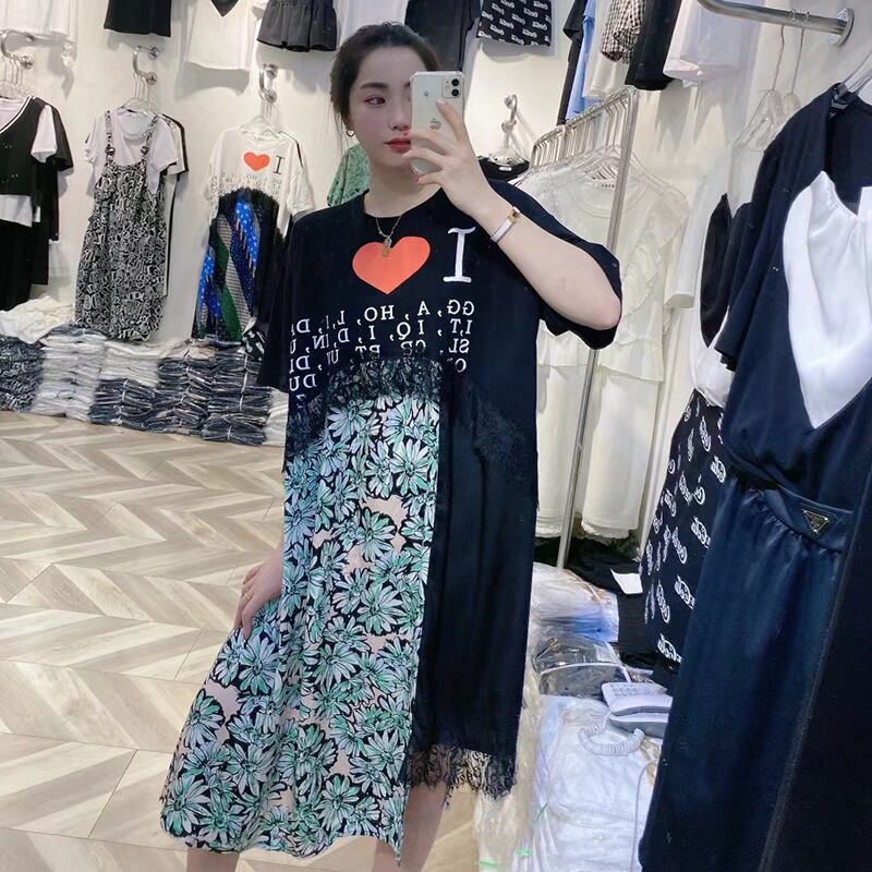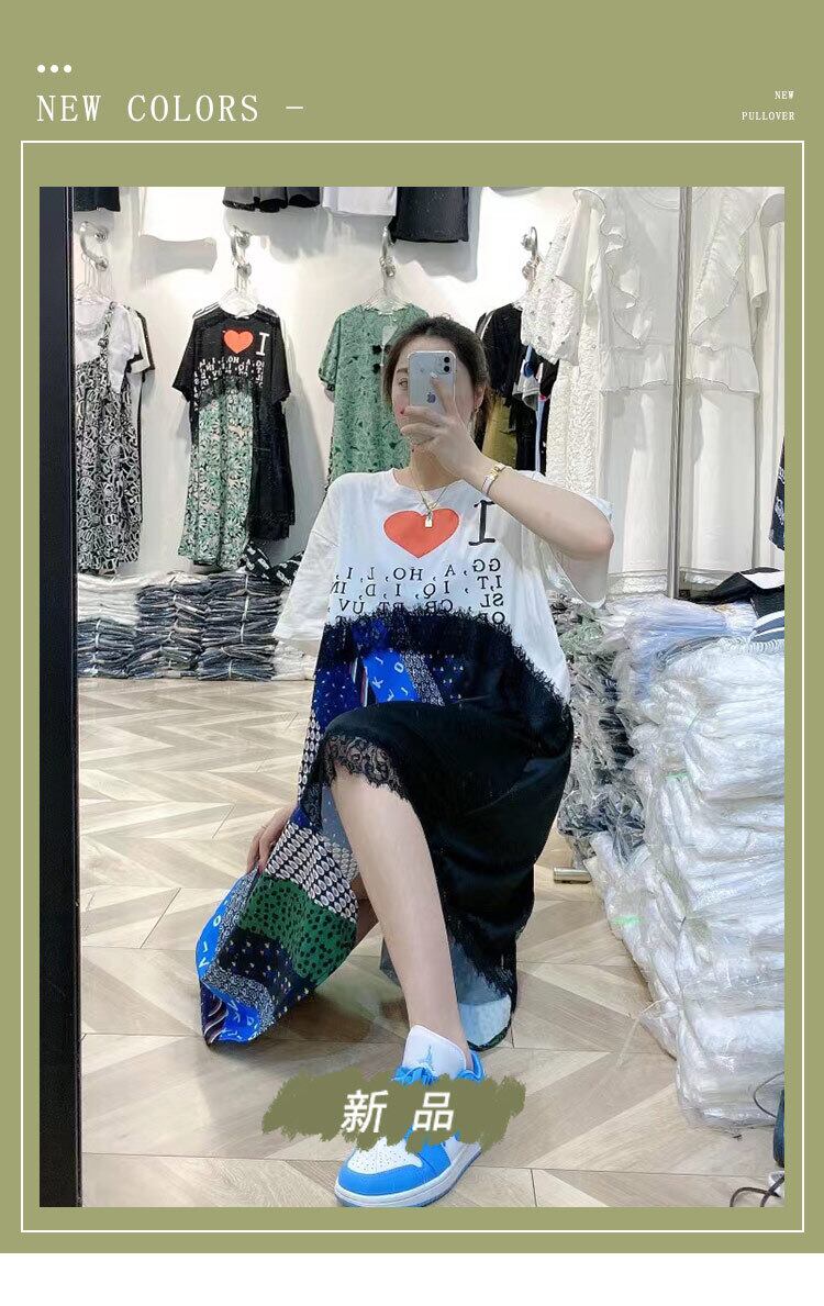 スカート ラウンドネックレースフローラルドレス サマー 大きめサイズ 夏物 花柄 Oネック ステッチ ミックスインファッション65693208171