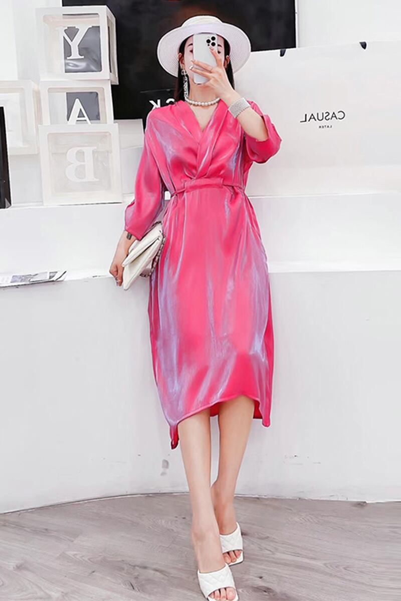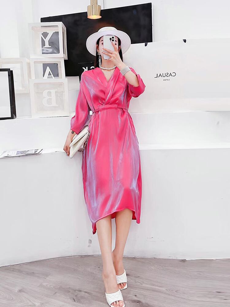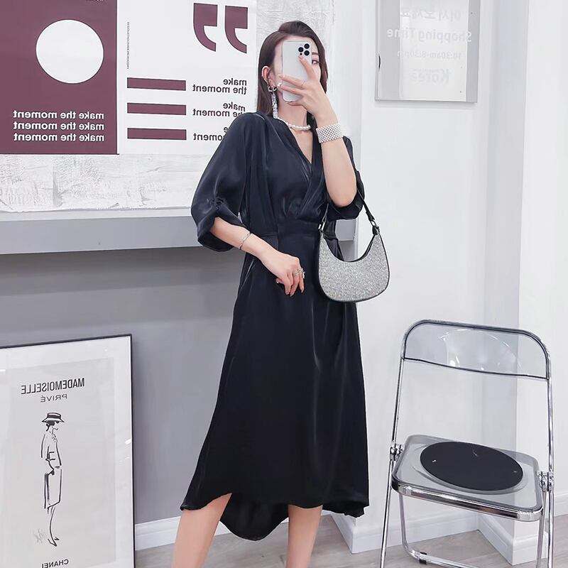 サマースタイルVネックスタンダードスリムドレス スカート レトロ 大きめサイズ 夏物 ミックスインファッション95607043787