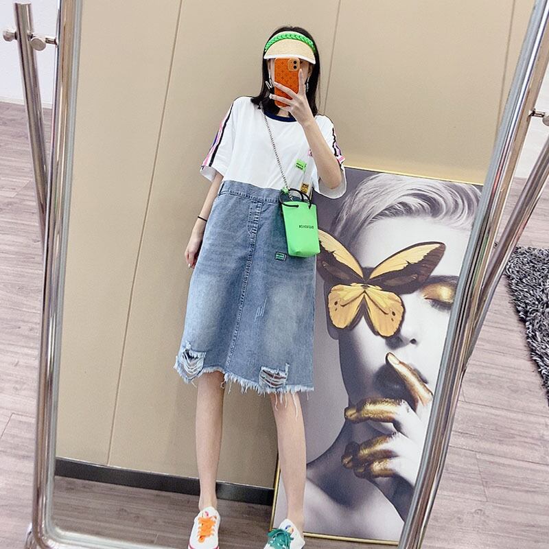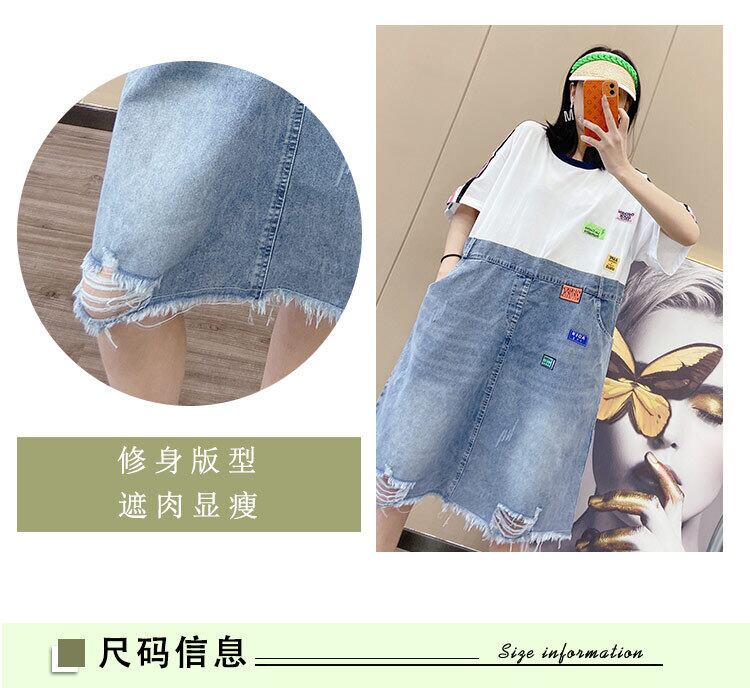 サマーラウンドネックストライプドレス スタイル薄手スカート 大きめサイズ 夏物 Oネック ステッチ ミックスインファッション32703553178
