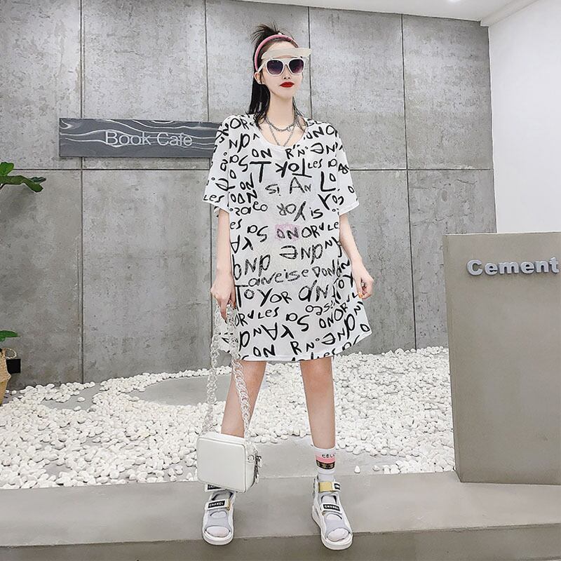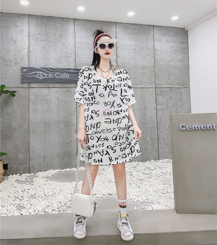 サマードレス ロング薄手カジュアルスカート プルオーバー ルーズ 大きめサイズ 夏物 ミックスインファッション3606829492