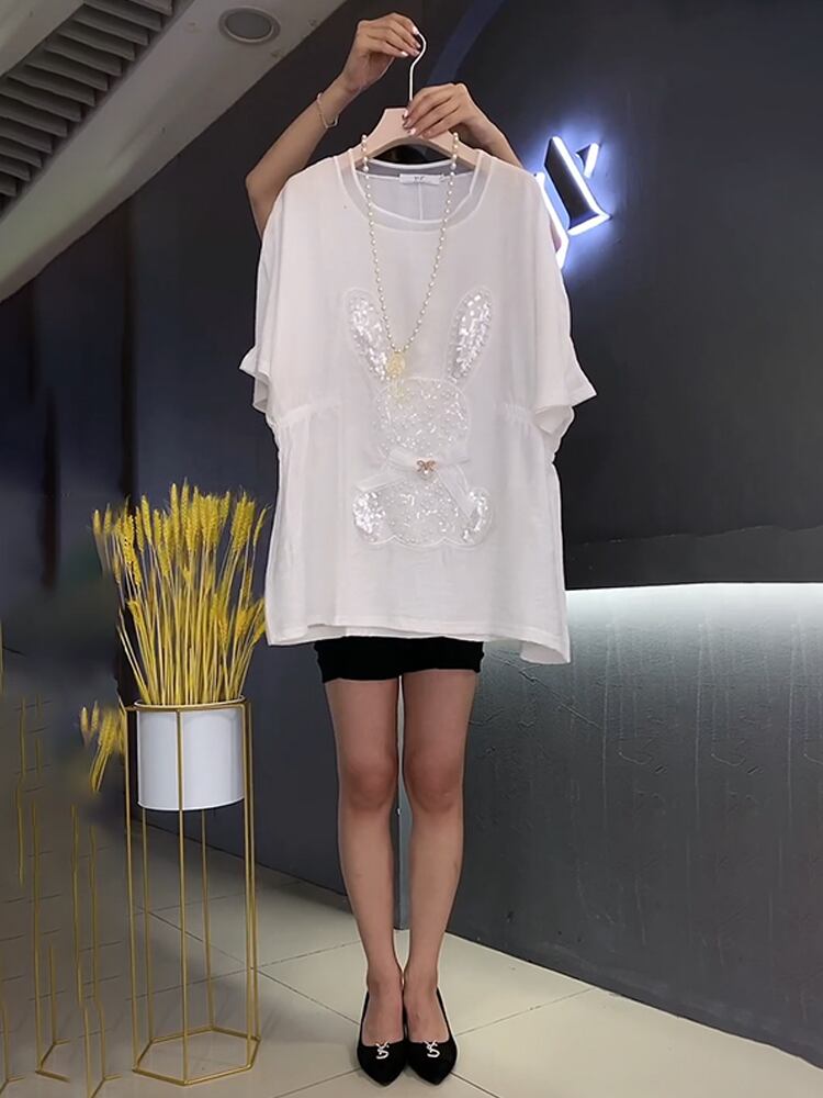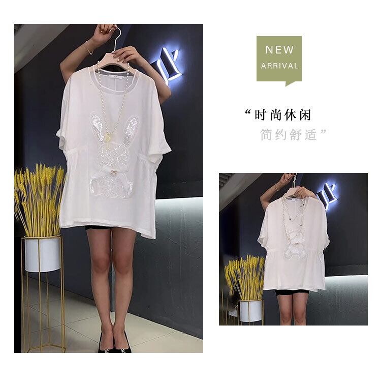 サマーラウンドネックメッシュスリーブTシャツ 大きめサイズ 夏物 Oネック ステッチ ミックスインファッション8596329006
