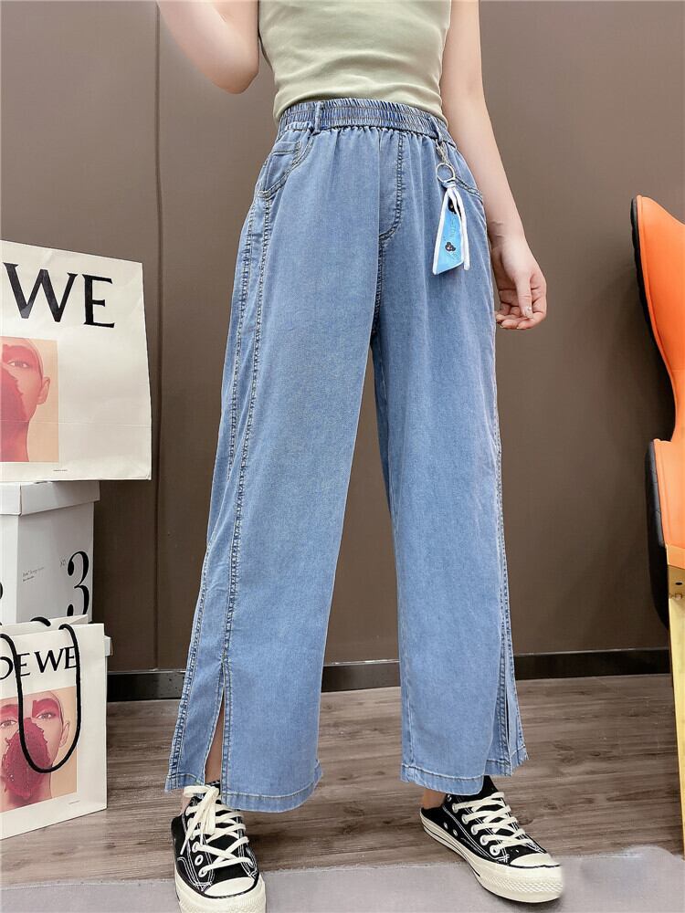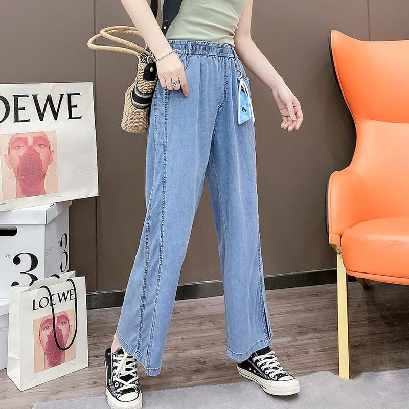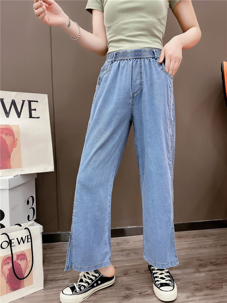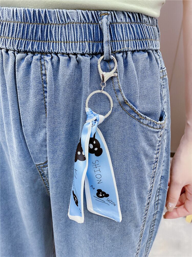 サマースタイルジーンズ ストレッチウェストルーズ薄手カジュアルパンツ エラスティック 伸縮 夏物 ミックスインファッション83777979218