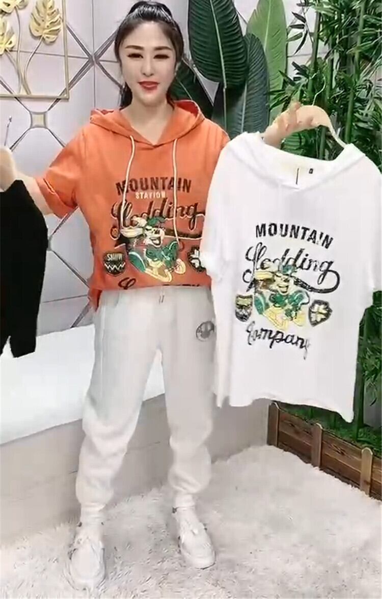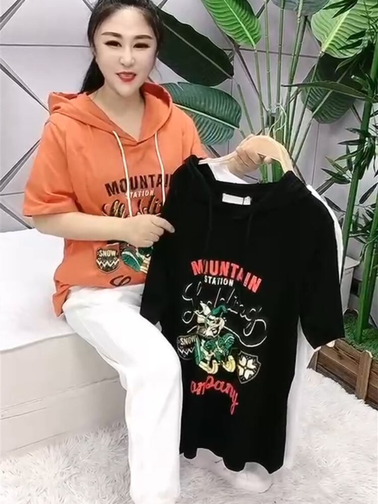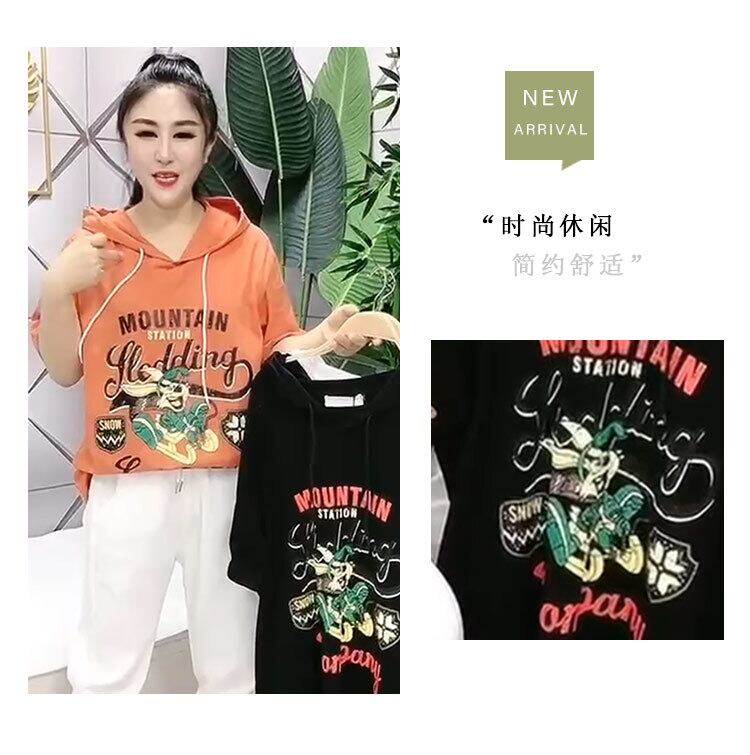 カジュアルフードセーター ルーズTシャツ サマープリント柄トップス 大きめサイズ 夏物 ミックスインファッション21607646719