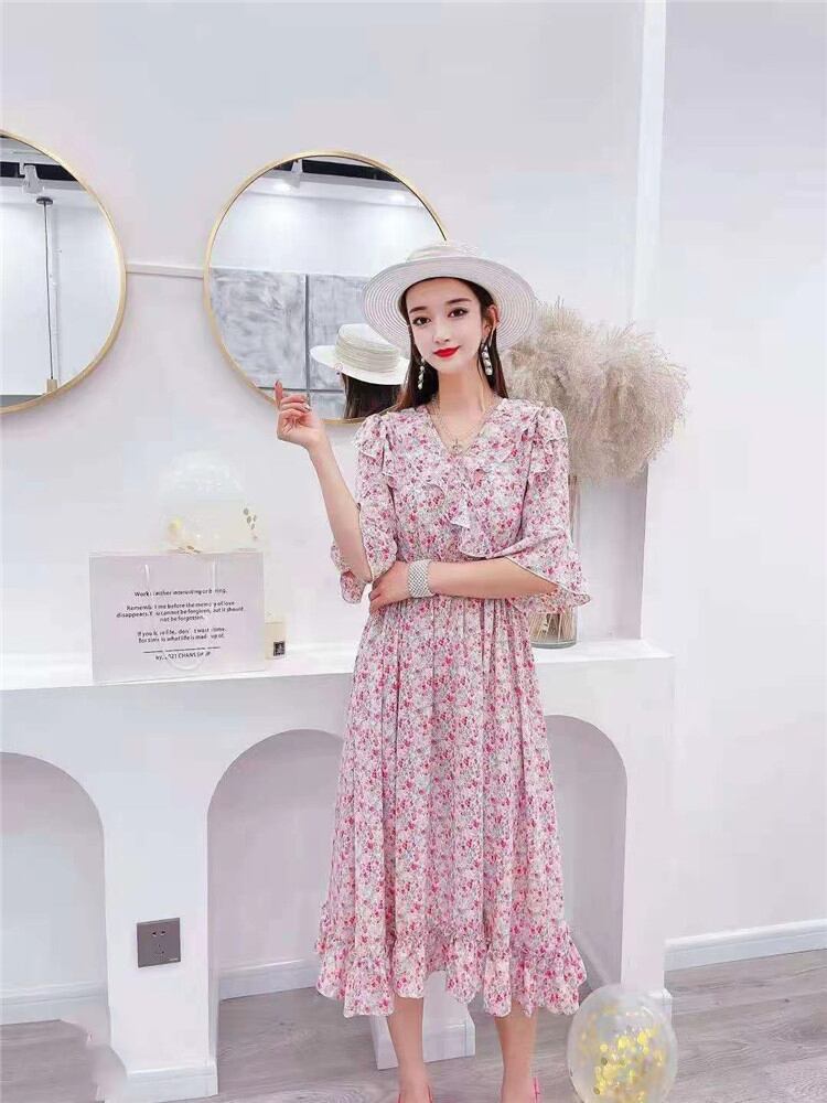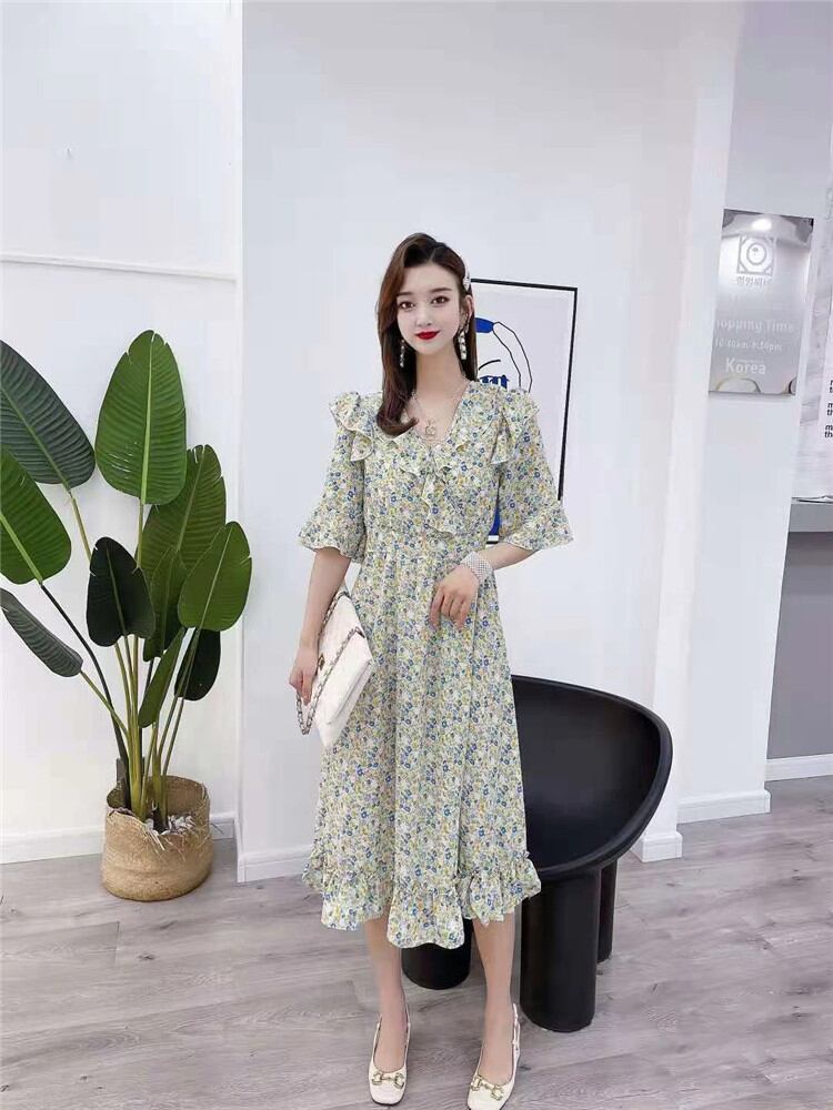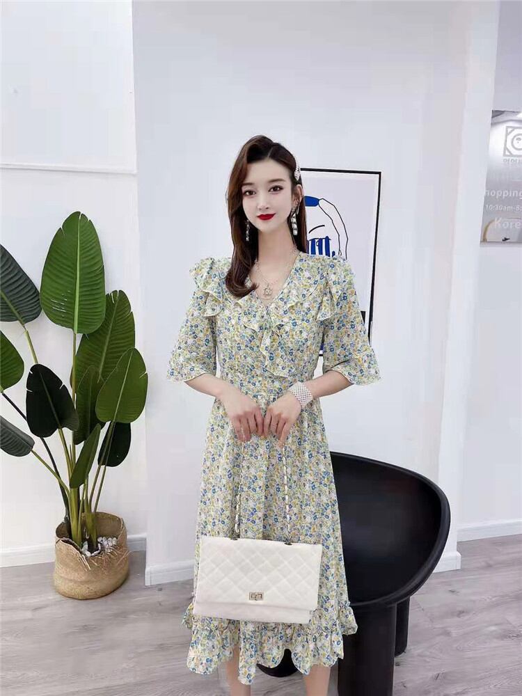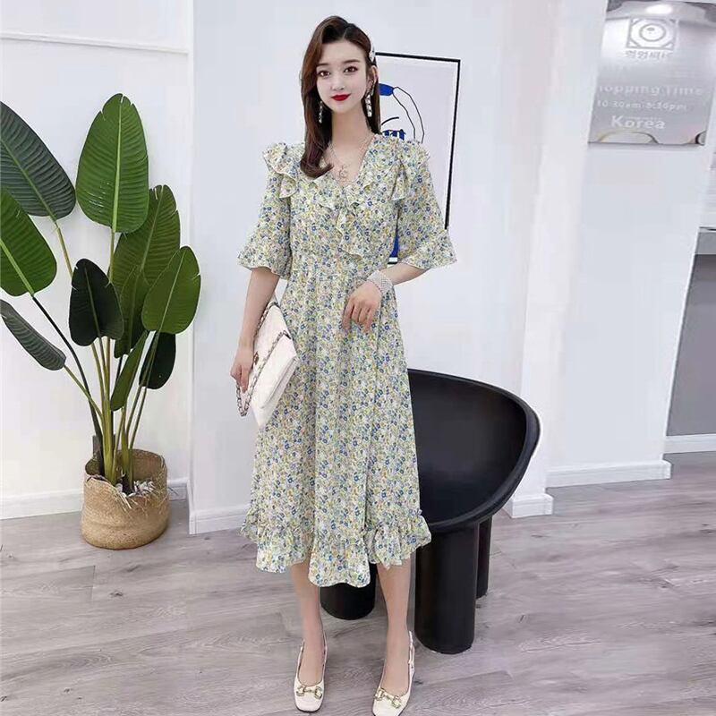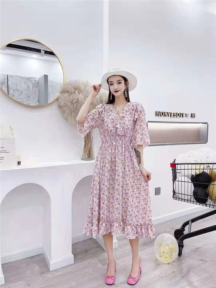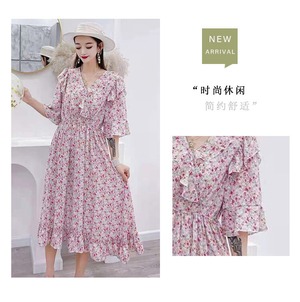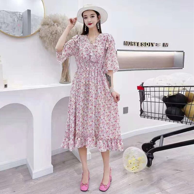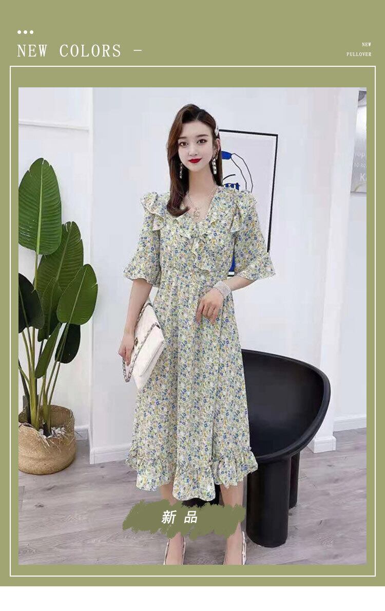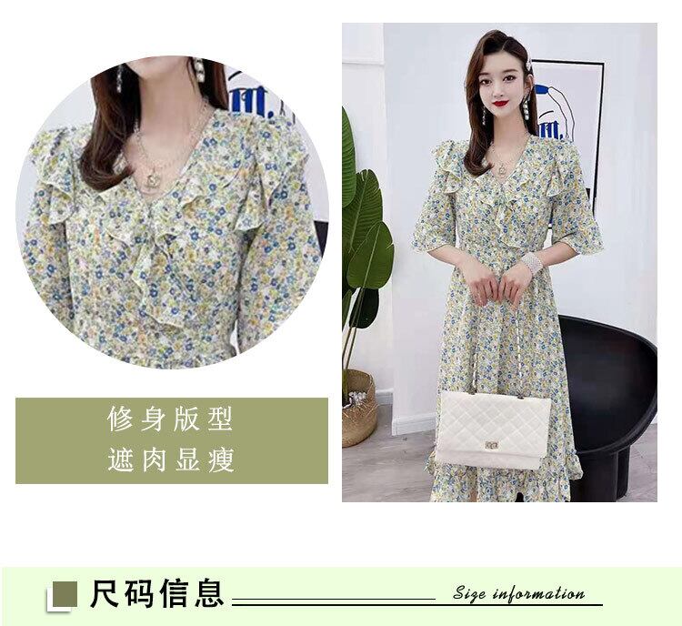 ドレス サマー薄手スタイルVネックフローラルウェストスカート 大きめサイズ 夏物 花柄 ミックスインファッション72454635357