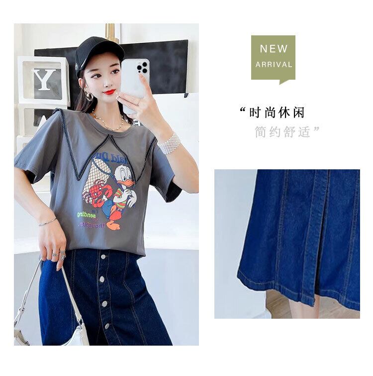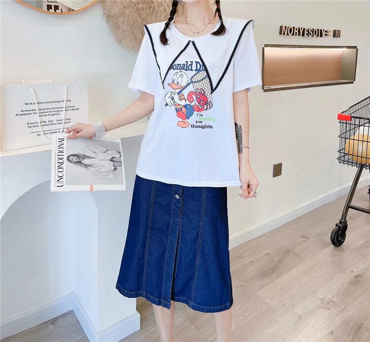 カラーパターンプリントTシャツ トップス ルーズスカート 大きめサイズ ミックスインファッション35102404265