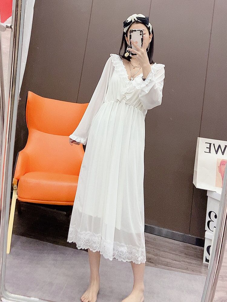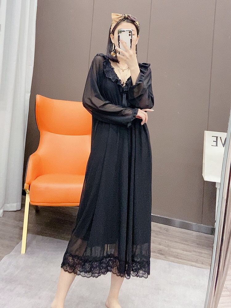 サマーVネックウェストレースメッシュドレス 大きめサイズ 夏物 ミックスインファッション85707614236