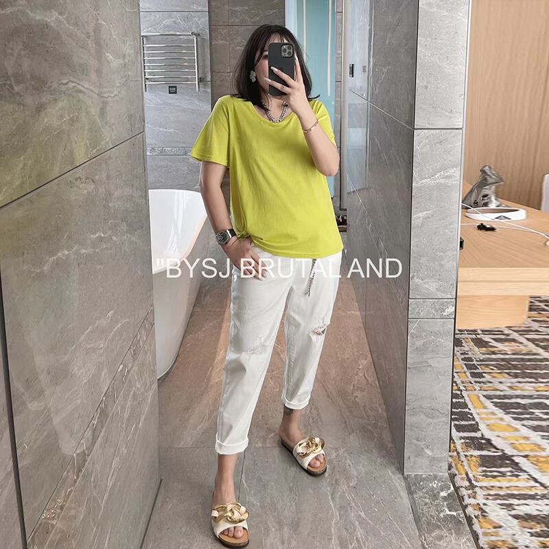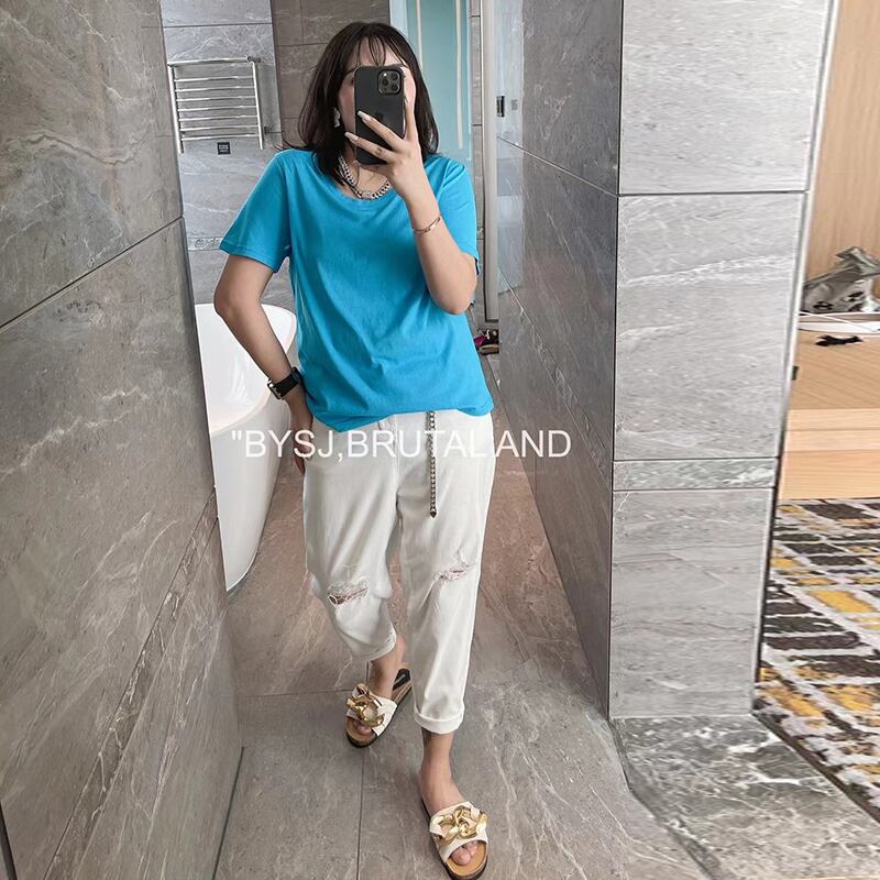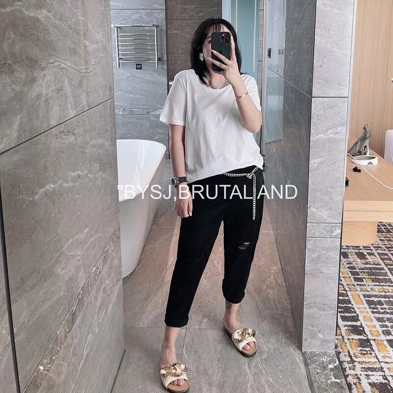 Tシャツ シャツ ルーズスタイルラウンドネックジーンズ 大きめサイズ Oネック ミックスインファッション19631747277
