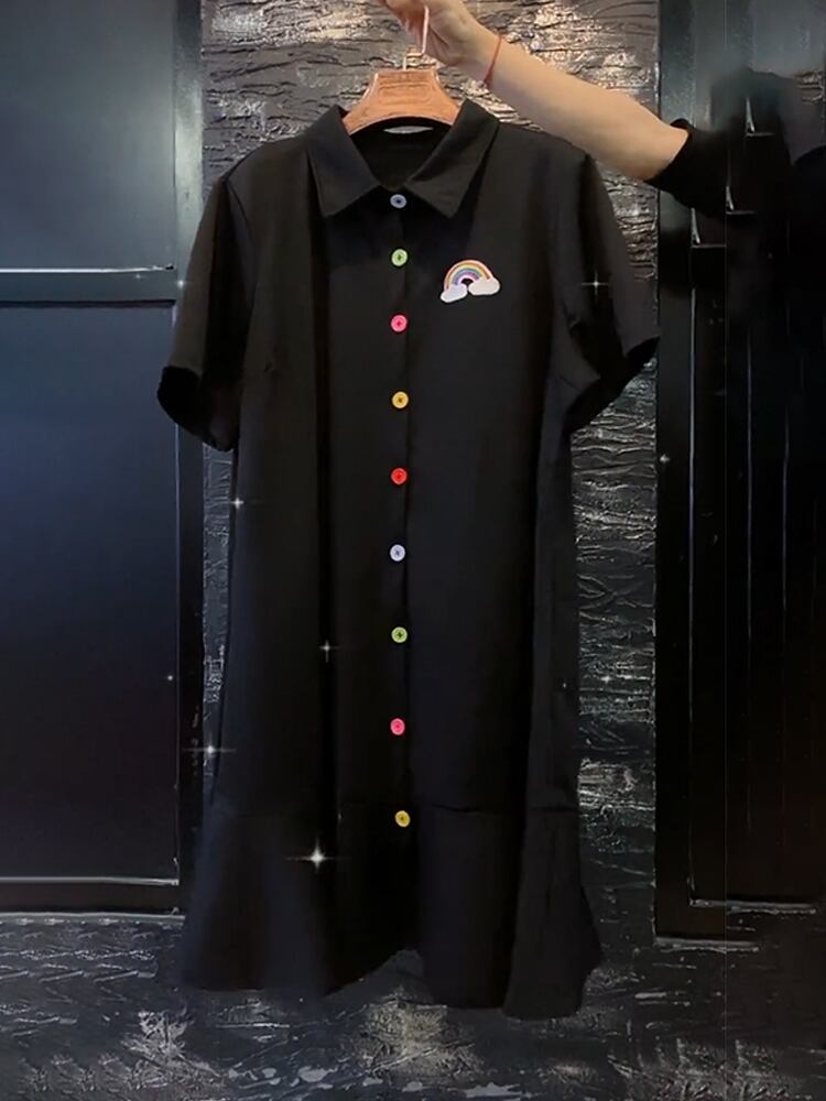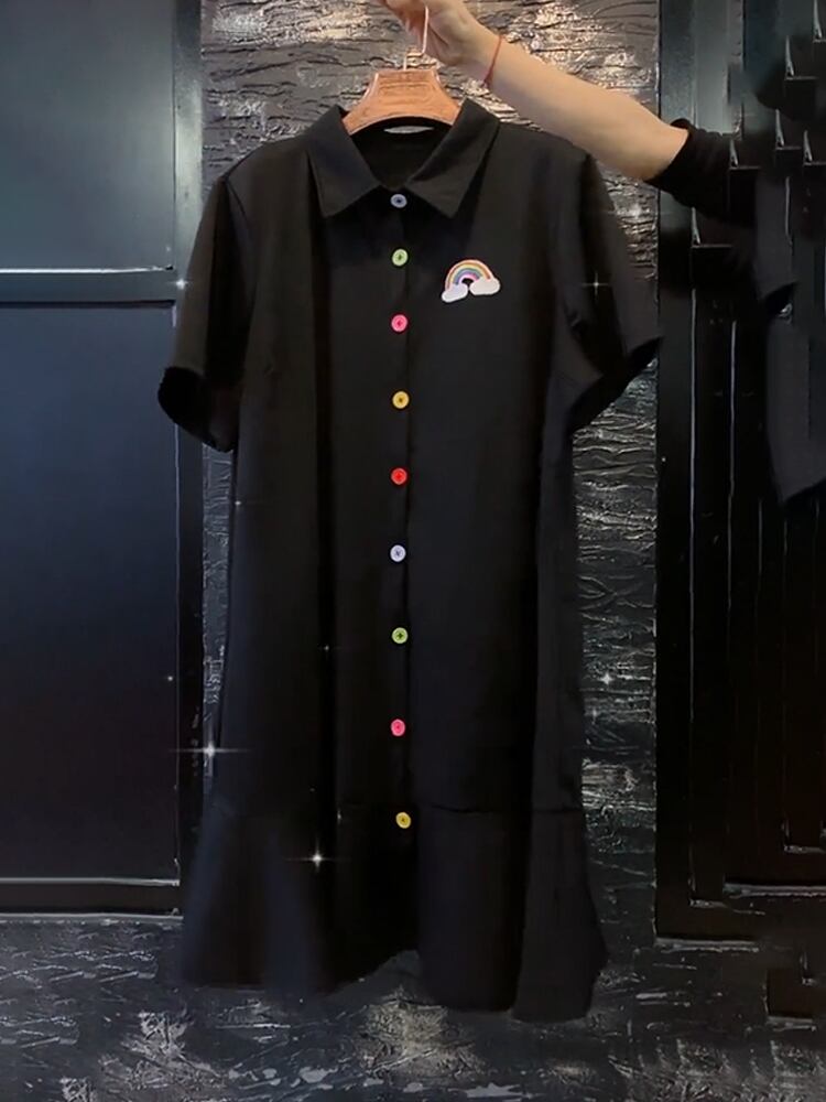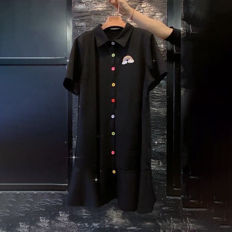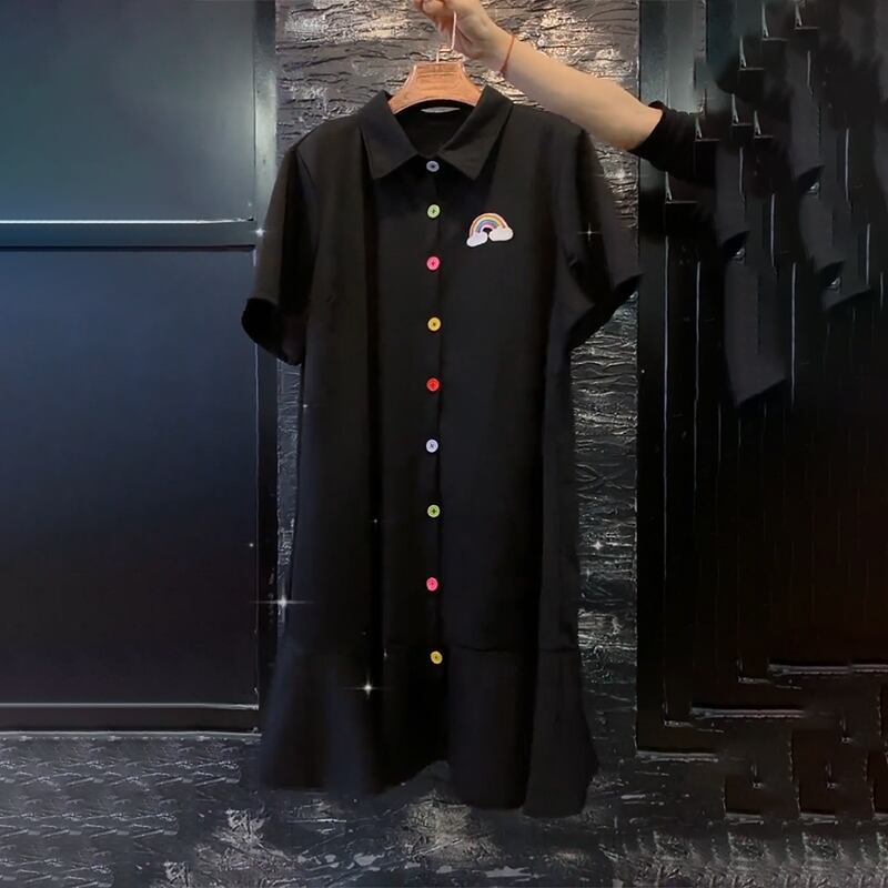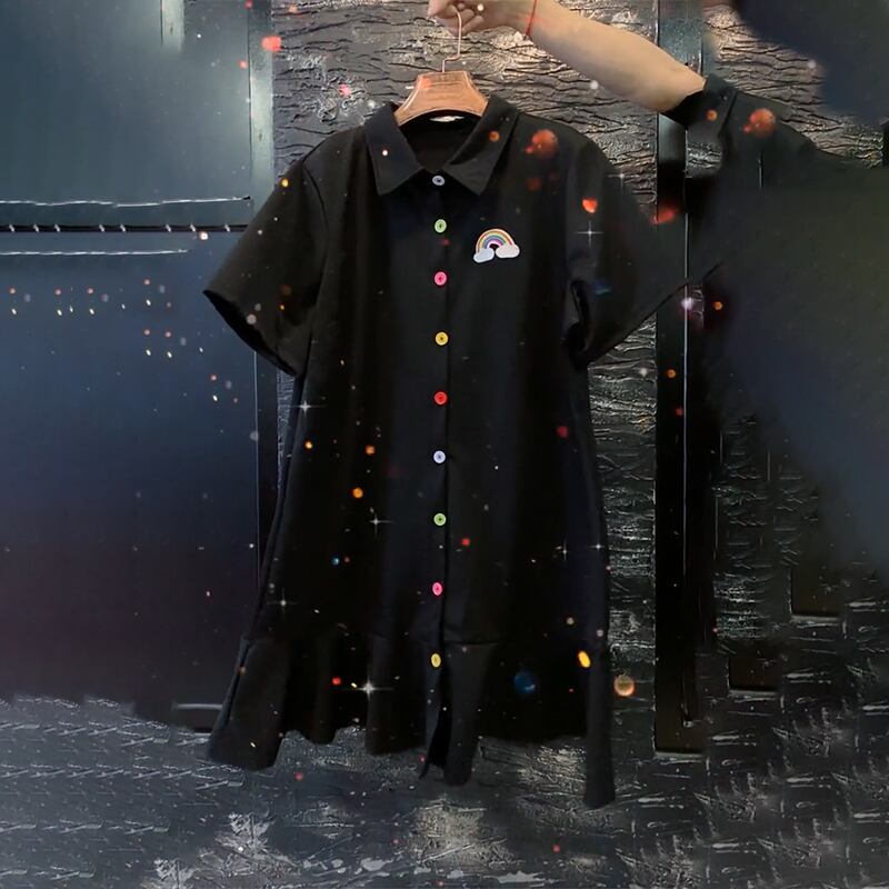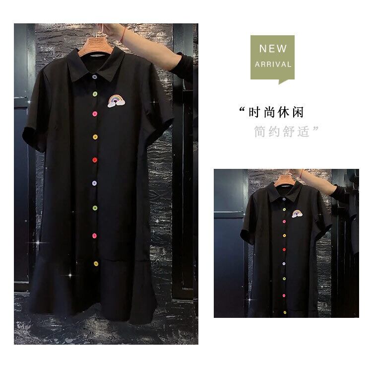 サマーカジュアルシャツ スカート ドレス レッド 刺繍 大きめサイズ 夏物 ミックスインファッション62520155677