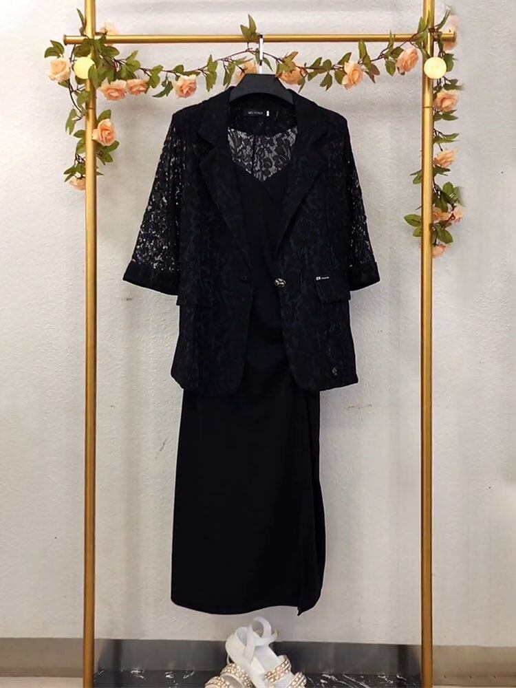 スタイルレーススリーブジャケット プリーツドレス 大きめサイズ ミックスインファッション90885870889