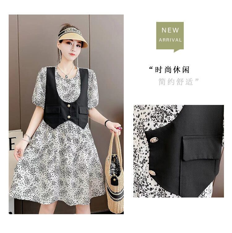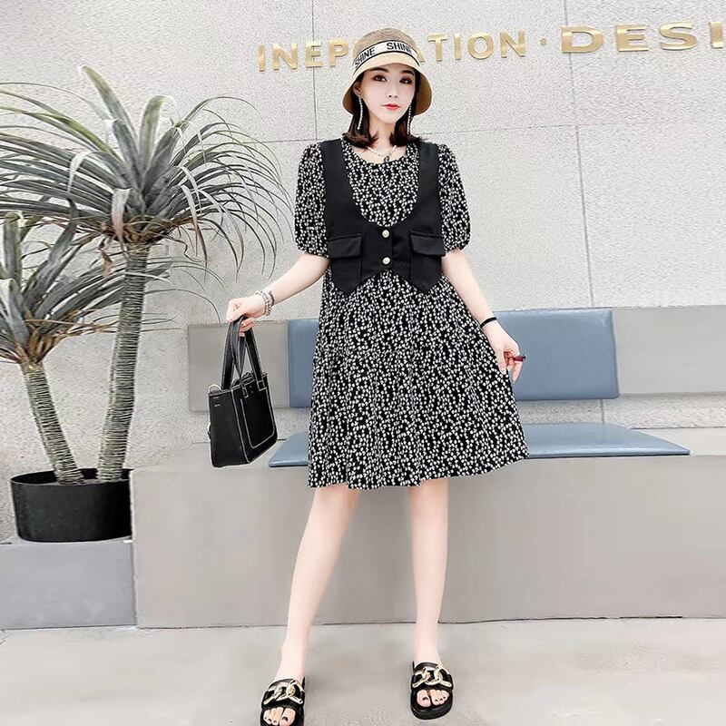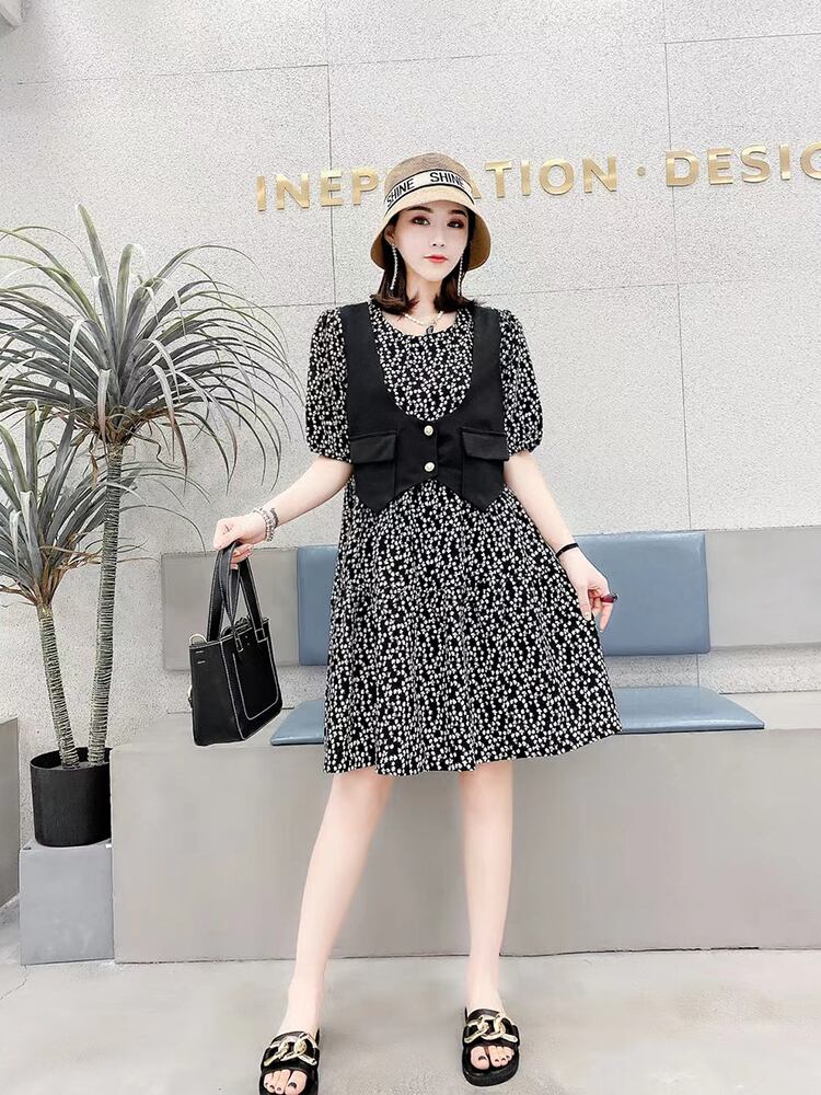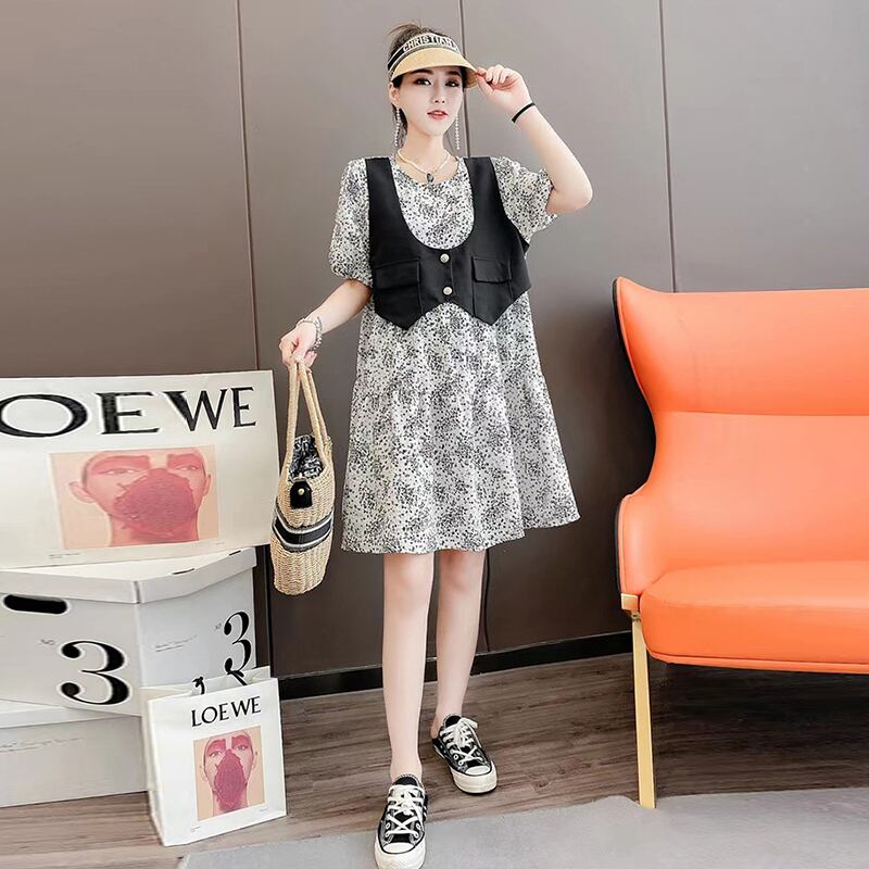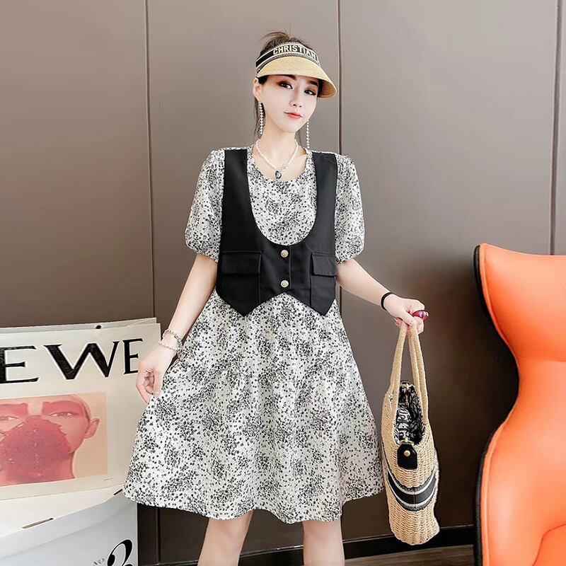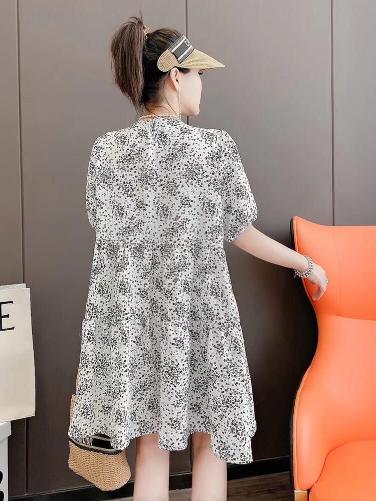 ウェストラウンドネックフローラルシフォンスリムドレス 花柄 Oネック ミックスインファッション70816870180