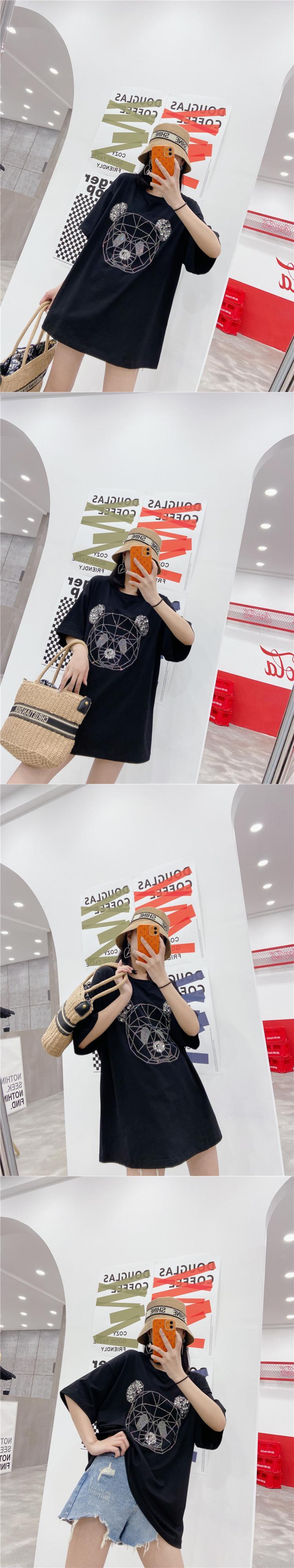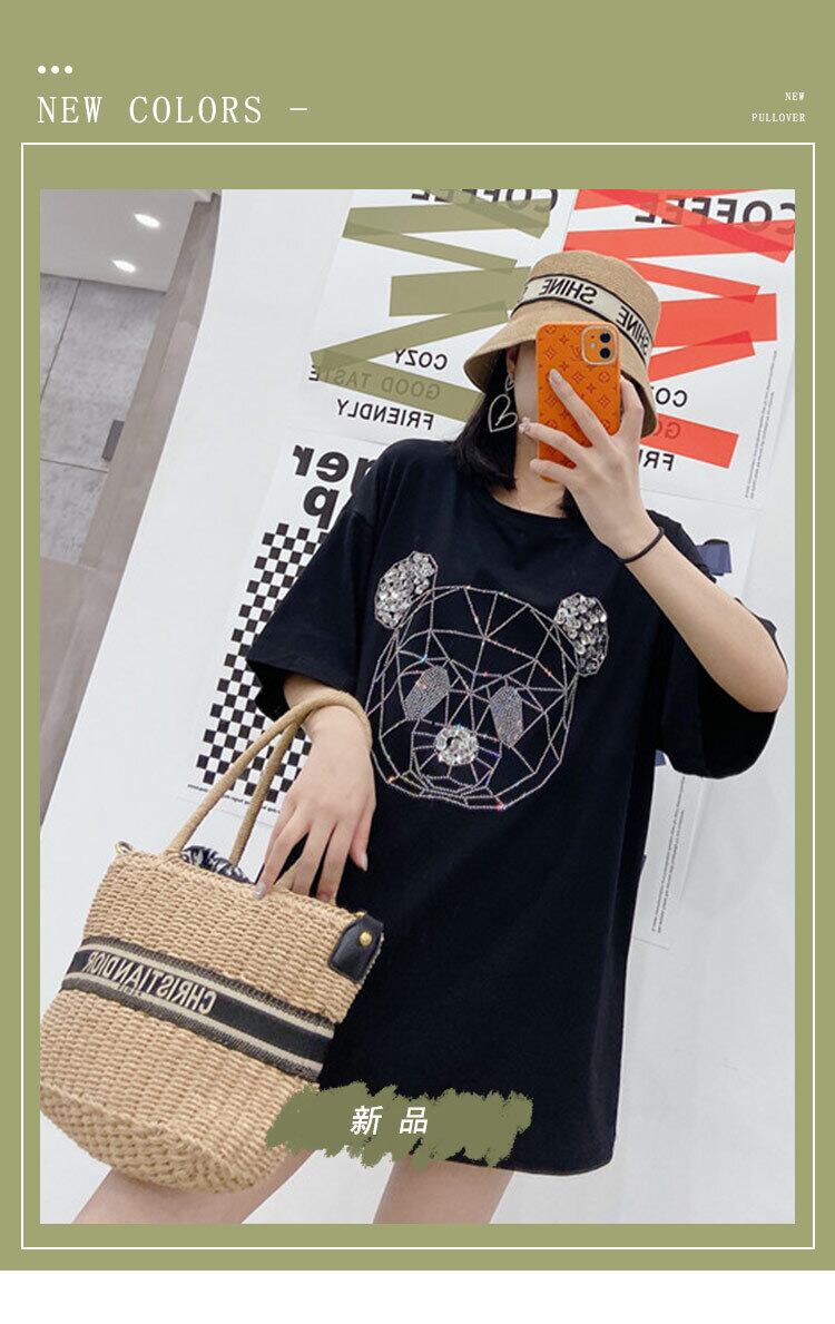 サマーラウンドネックルーズTシャツ 大きめサイズ 夏物 Oネック ミックスインファッション22131710561
