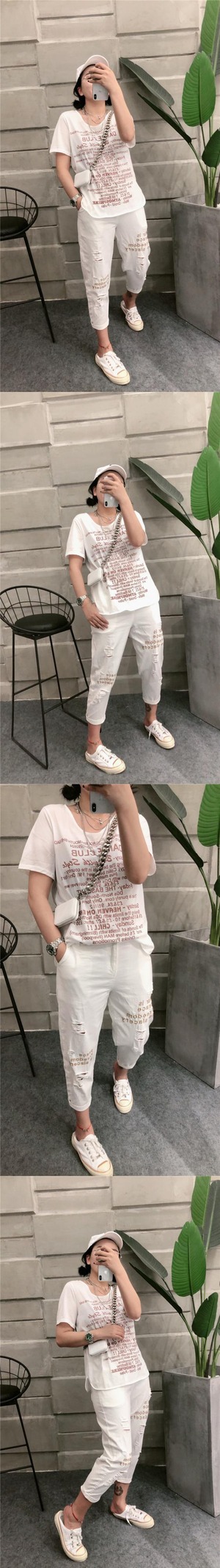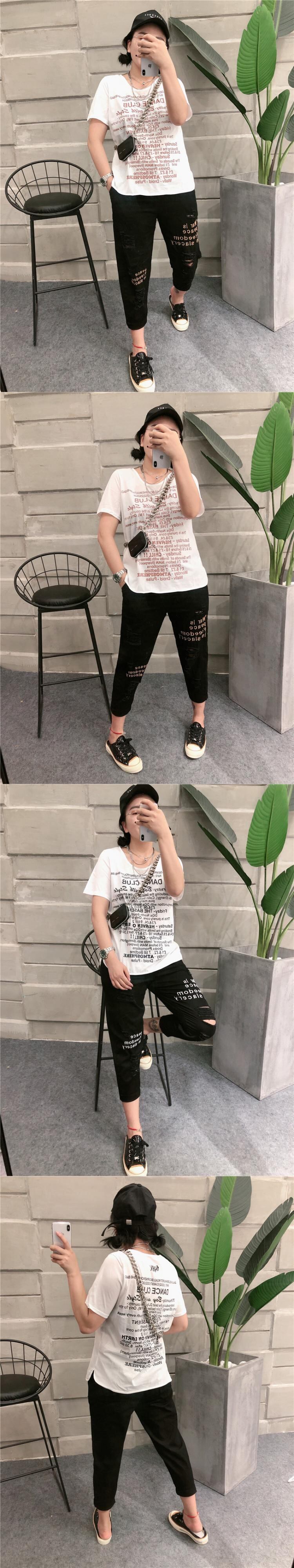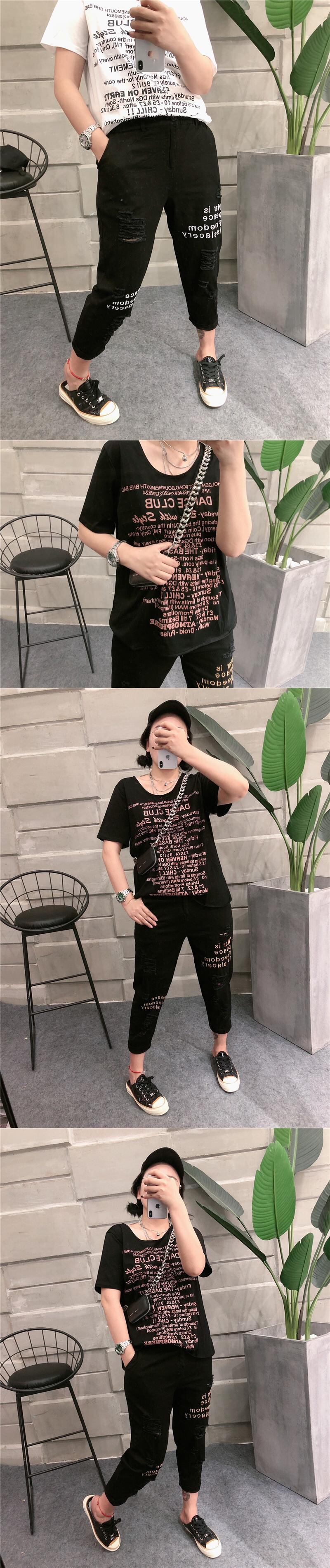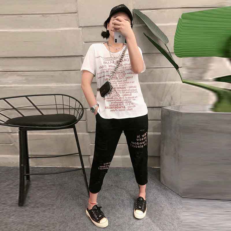 サマーTシャツ シャツ ルーズラウンドネックトップス スタイルジーンズ 夏物 Oネック ミックスインファッション58291628896