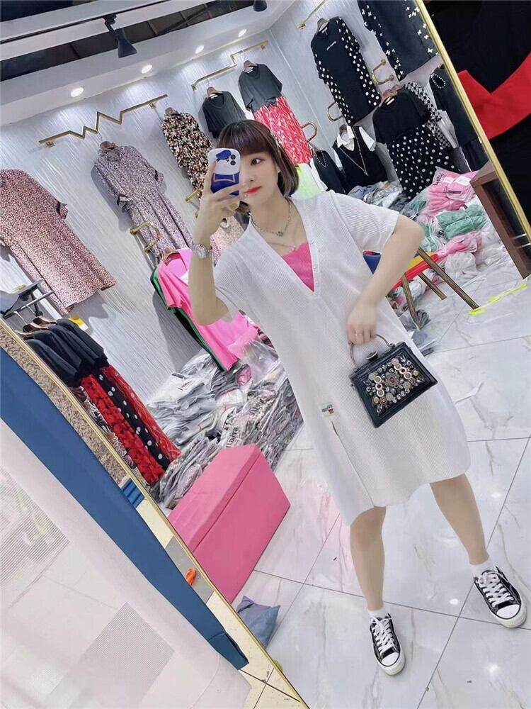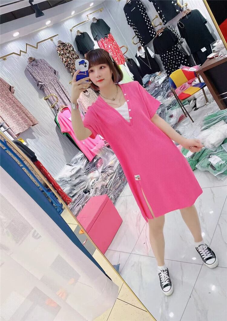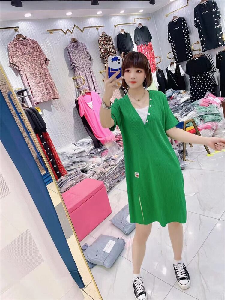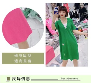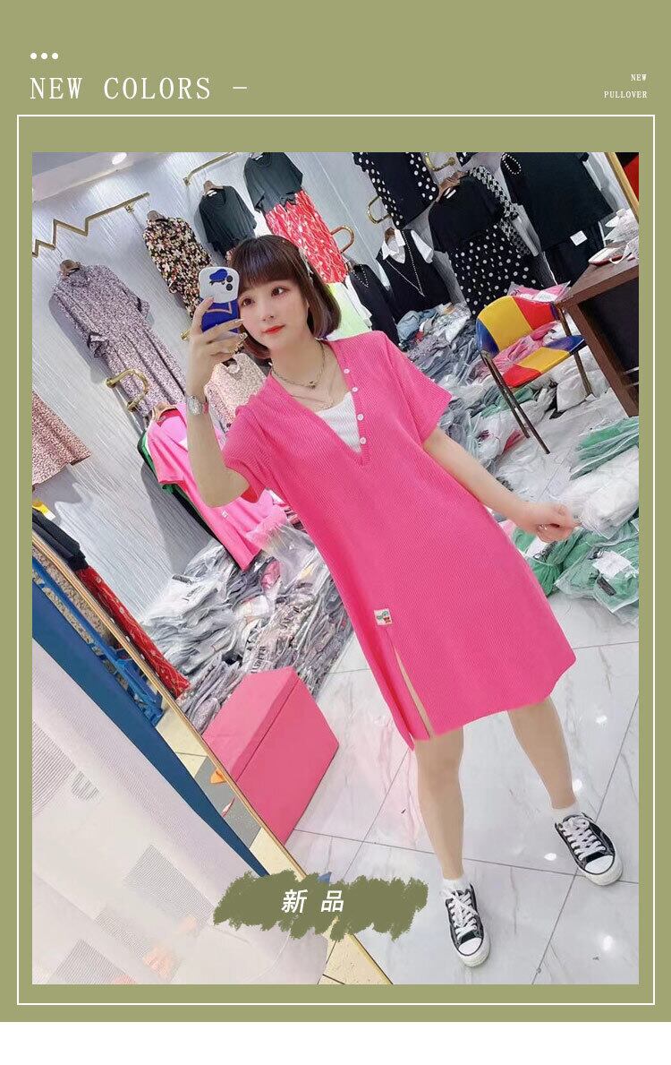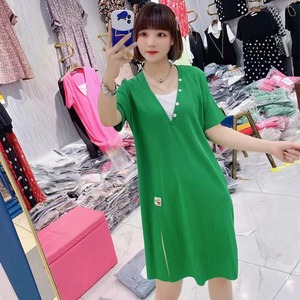 サマースタイルVネックニットドレス 大きめサイズ 夏物 ミックスインファッション12054735126