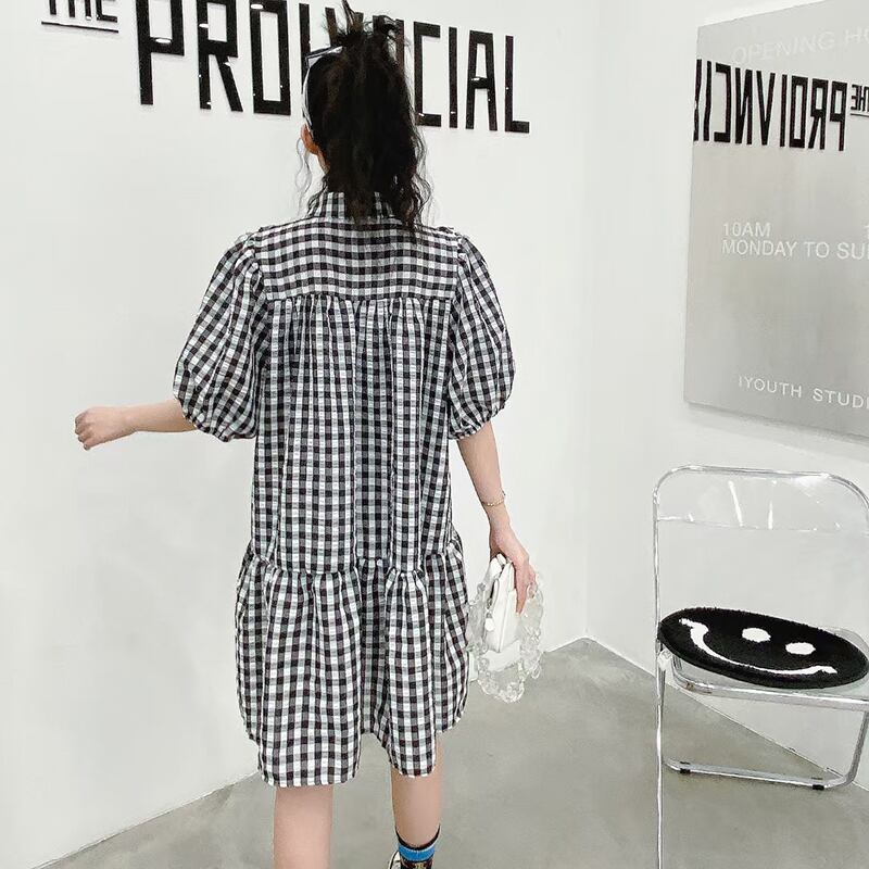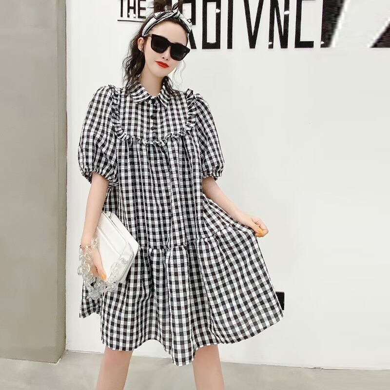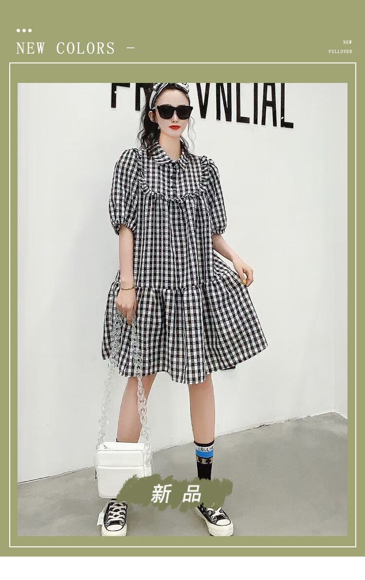 サマースタイル格子柄ドレス スカート 大きめサイズ 夏物 ミックスインファッション30643700844
