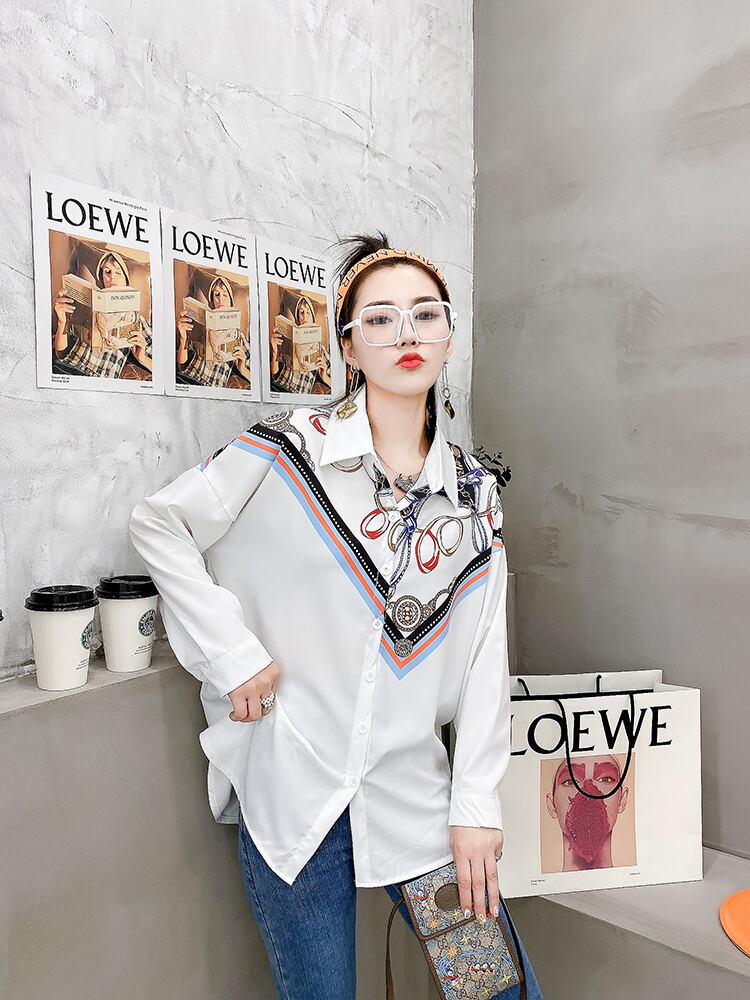 スプリングパターンカラーストライプシャツ トップス 大きめサイズ 春物 ミックスインファッション64855452449