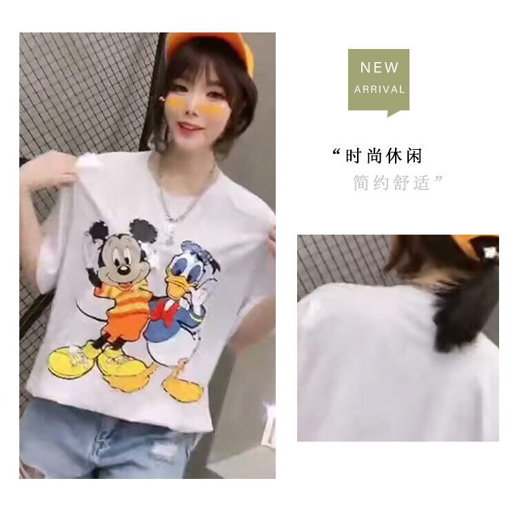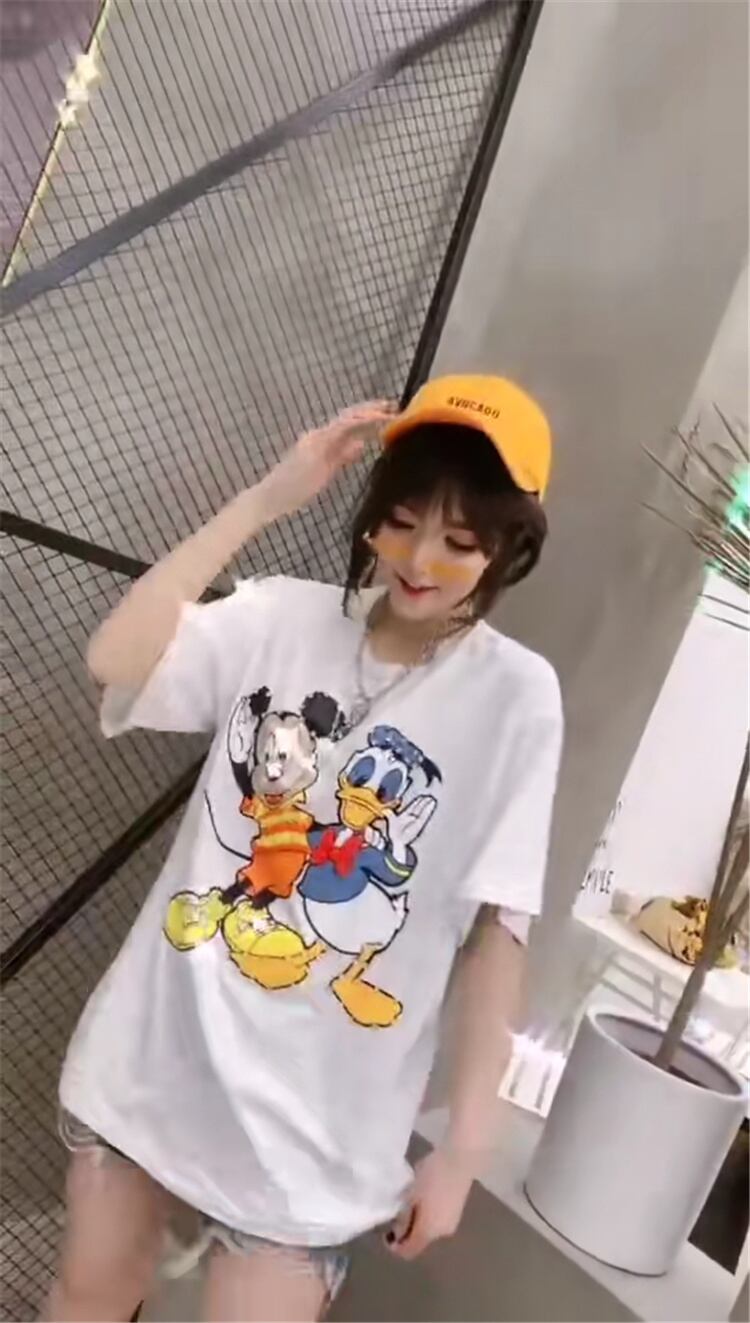 ラウンドネックルーズスプリングTシャツ 大きめサイズ 春物 Oネック ミックスインファッション1289075979