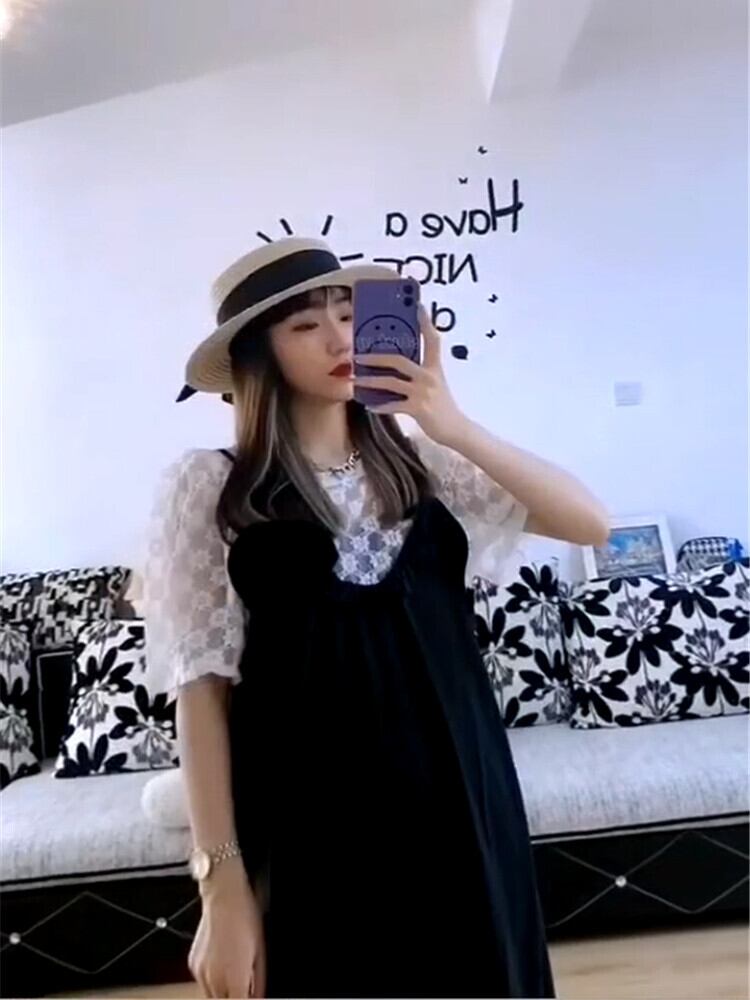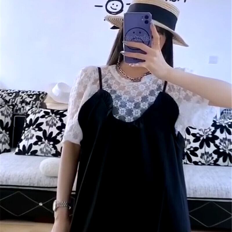 サマーレースFlowerデザイン トップス ルーズロングスカート 大きめサイズ 大人ガーリー スウィート キュート カジュアル 夏物 フラワーデザイン ミックスインファッション98849431576