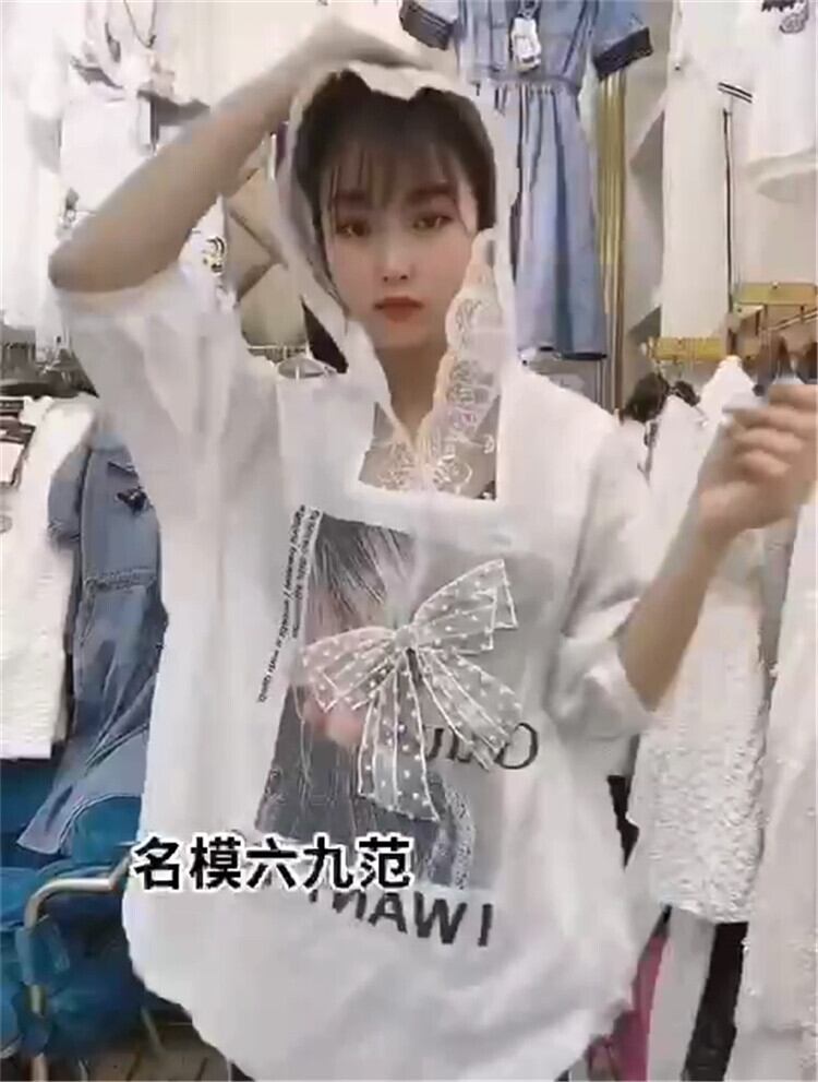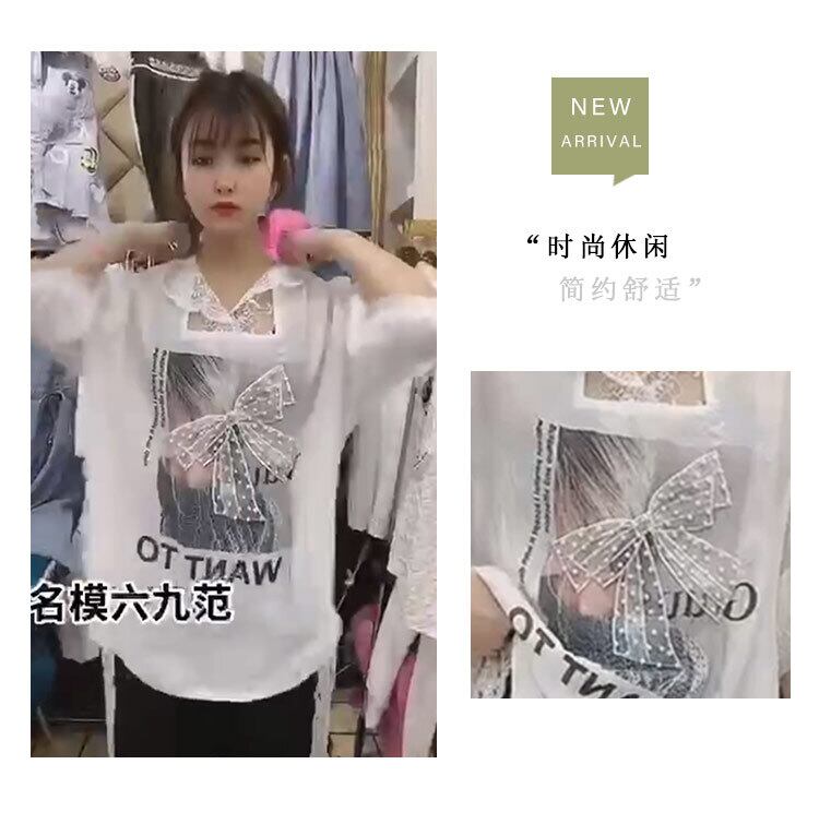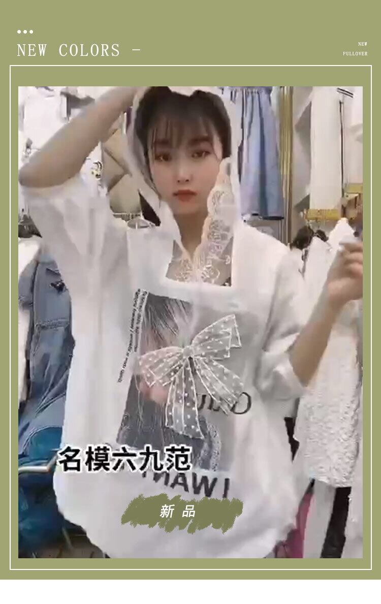 レースフードリボンスリーブTシャツ ランタンスリーブ 大きめサイズ ミックスインファッション52557429053