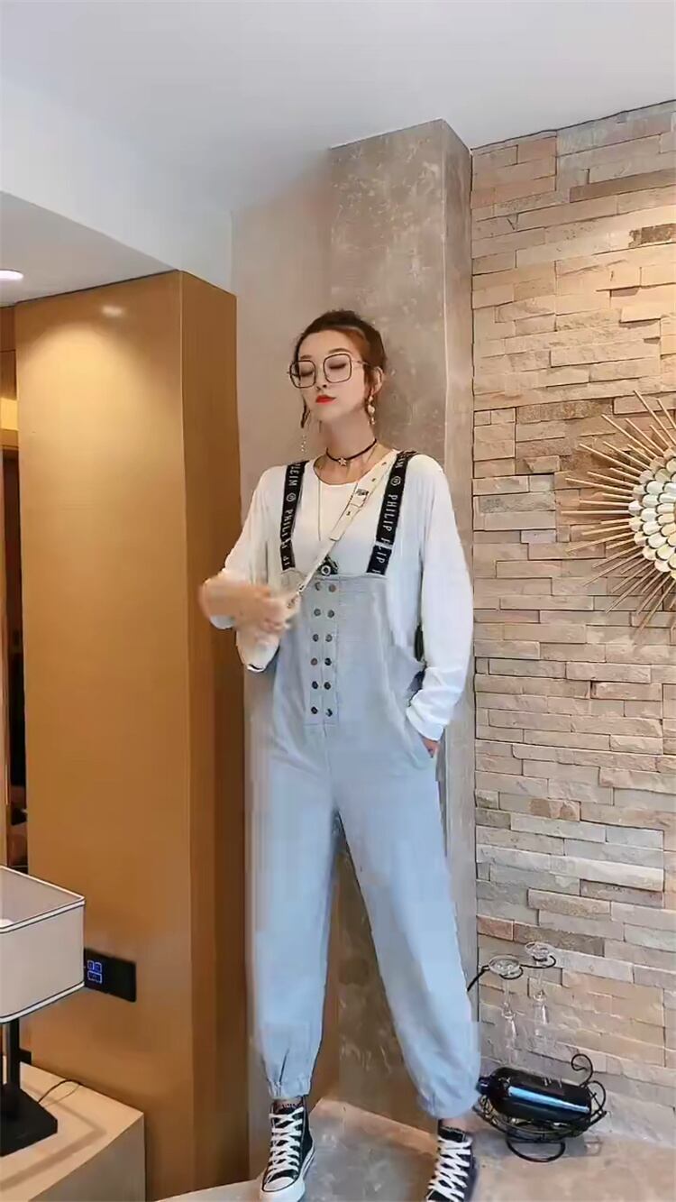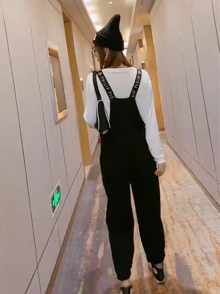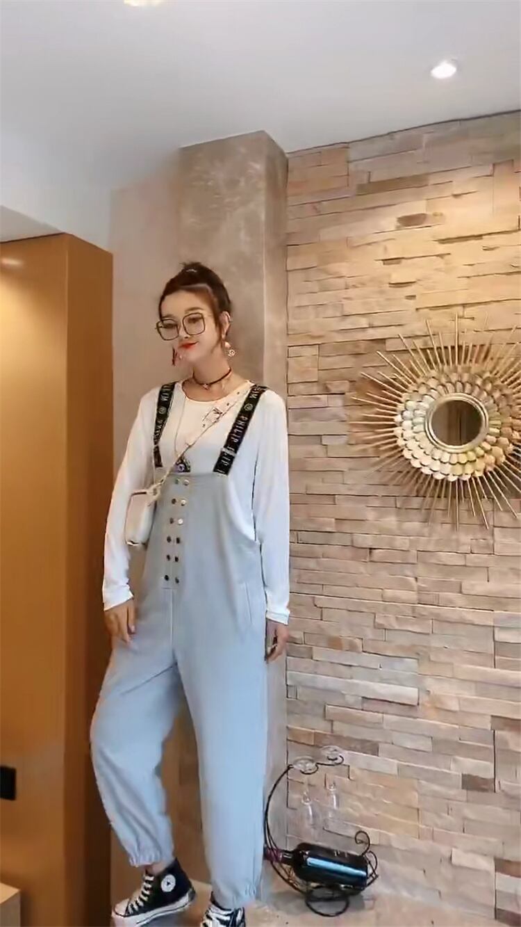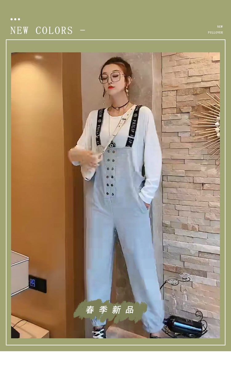 ラウンドネックシャツ Tシャツ スリムダブルブレストジャンプスーツ オールインワン スプリング ロング 大きめサイズ 春物 Oネック ミックスインファッション32903523279