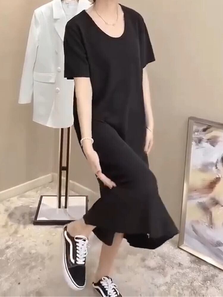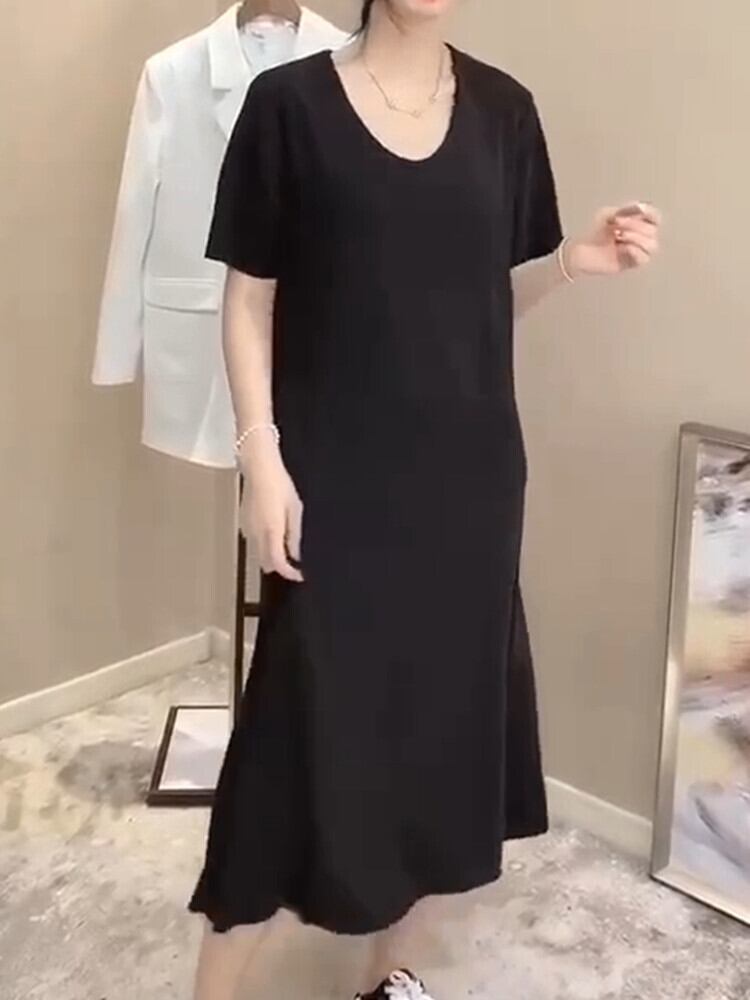 スプリングサマースタンダードドレス スカート レトロ 大きめサイズ 春物 夏物 ミックスインファッション98844443581