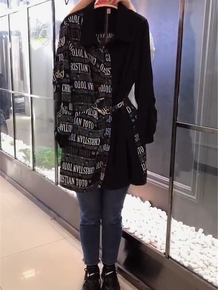 スプリングスタイルルーズブレストベルト ドレス 大きめサイズ 春物 ハーネス ステッチ ミックスインファッション66554132036