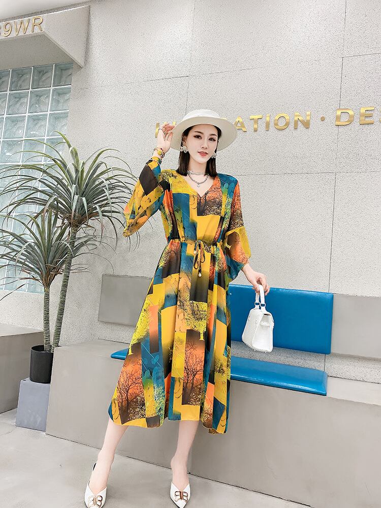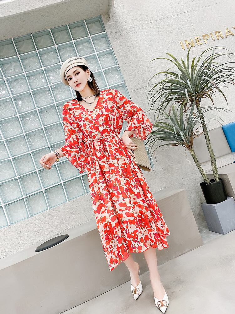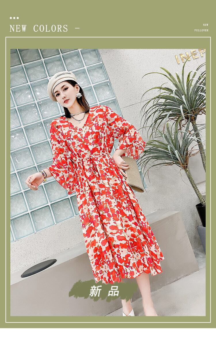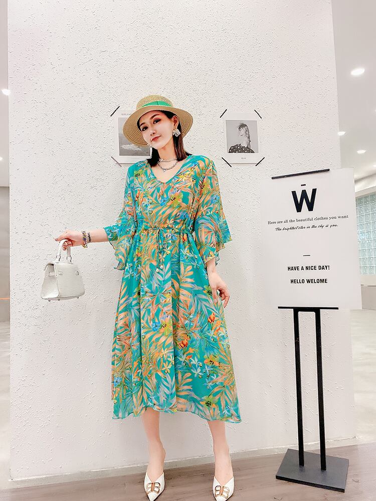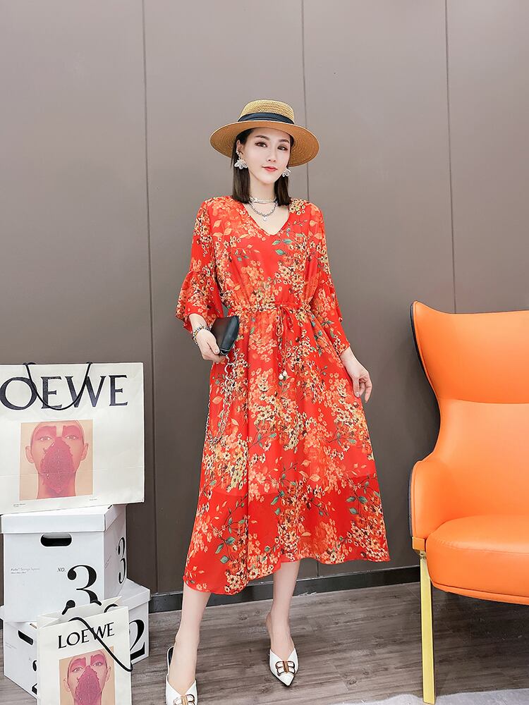 スプリングサマースリーブドレス スカート 大きめサイズ 春物 夏物 フラワーデザイン ミックスインファッション30414255254