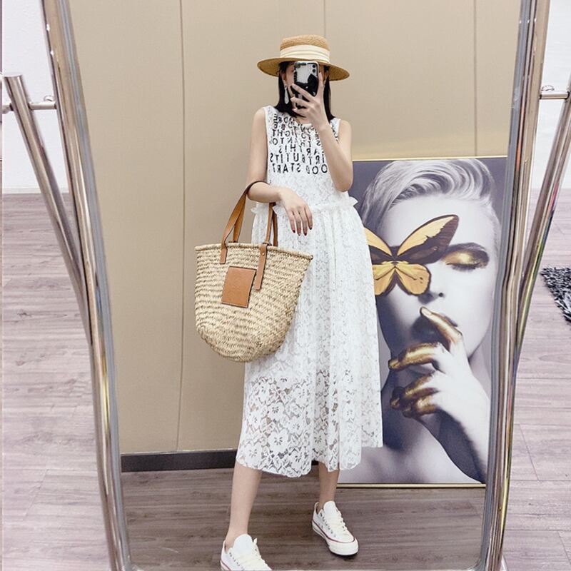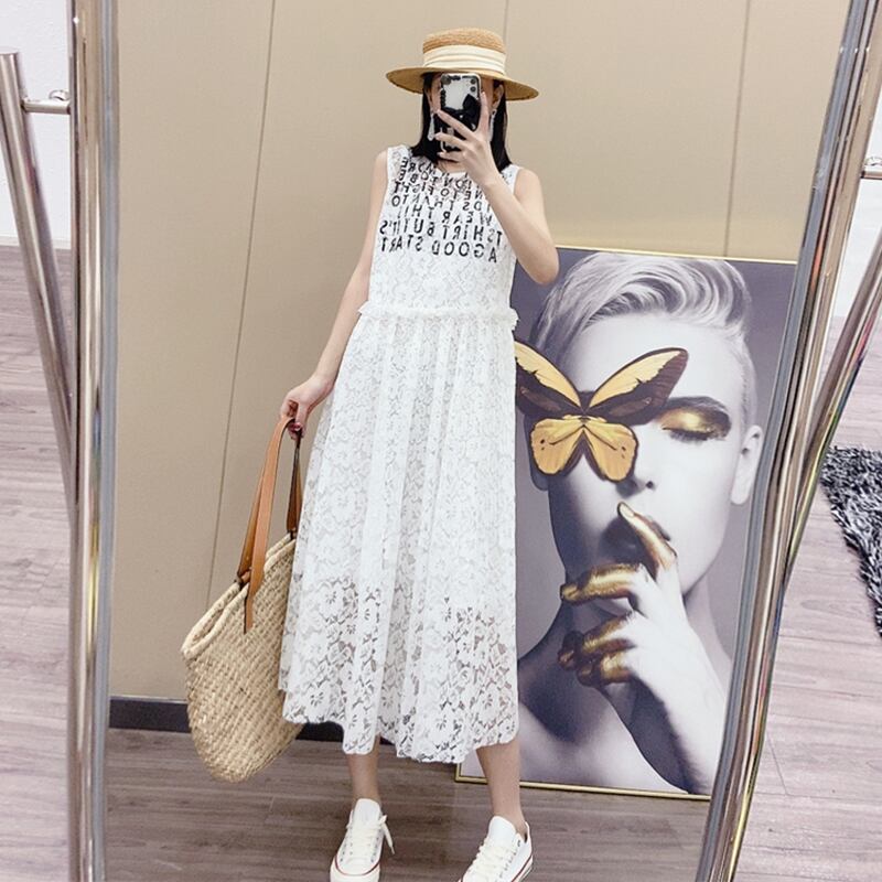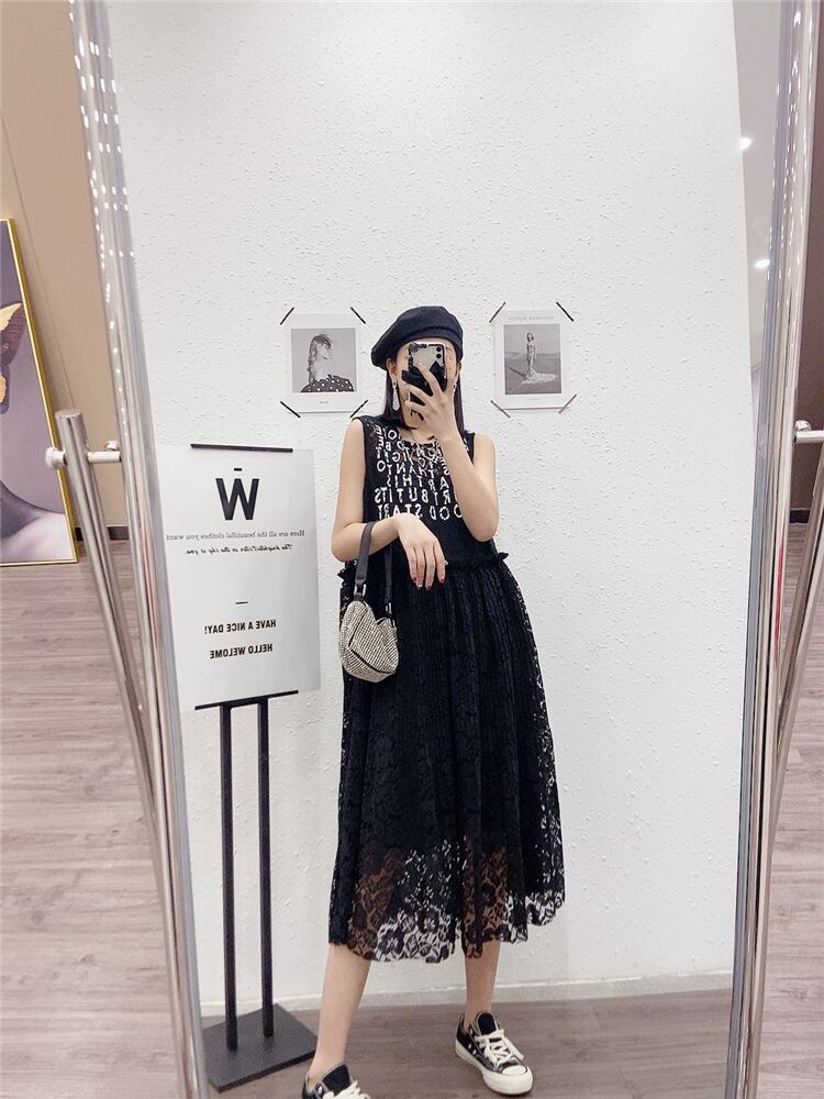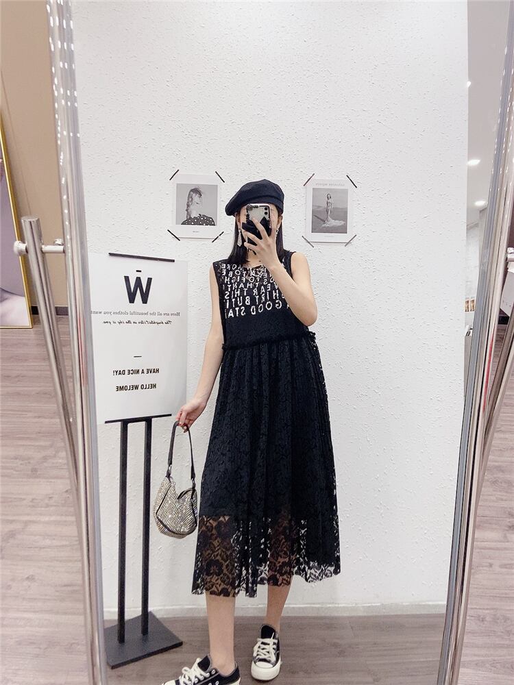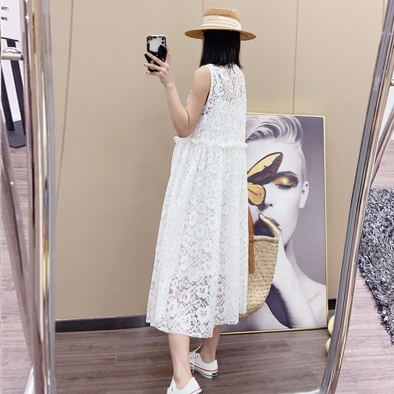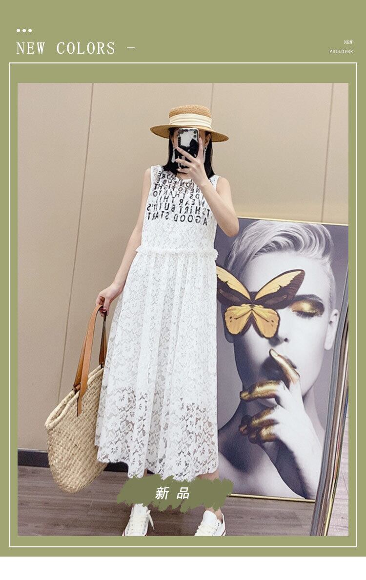 スタイルラウンドネックレースパターンノースリーブウェストルーズドレス Oネック ヨーロピアン ミックスインファッション5998155583