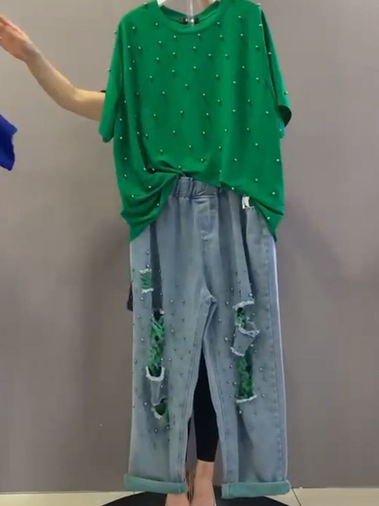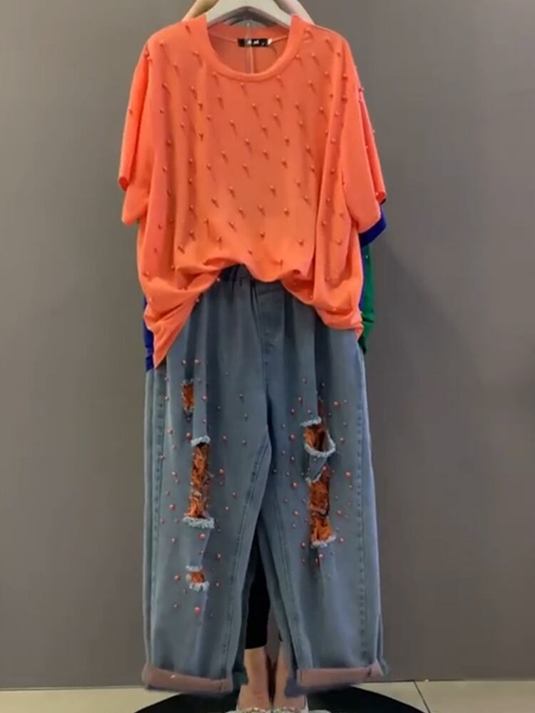 サマーTシャツ ジーンズ 大きめサイズ 夏物 ミックスインファッション77982789493