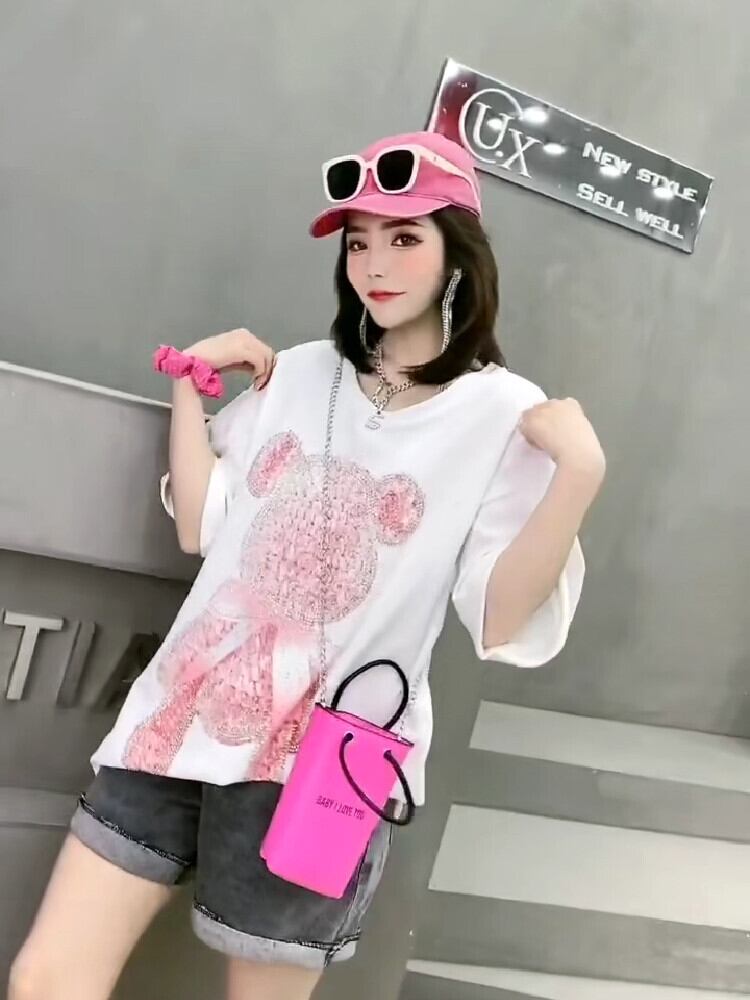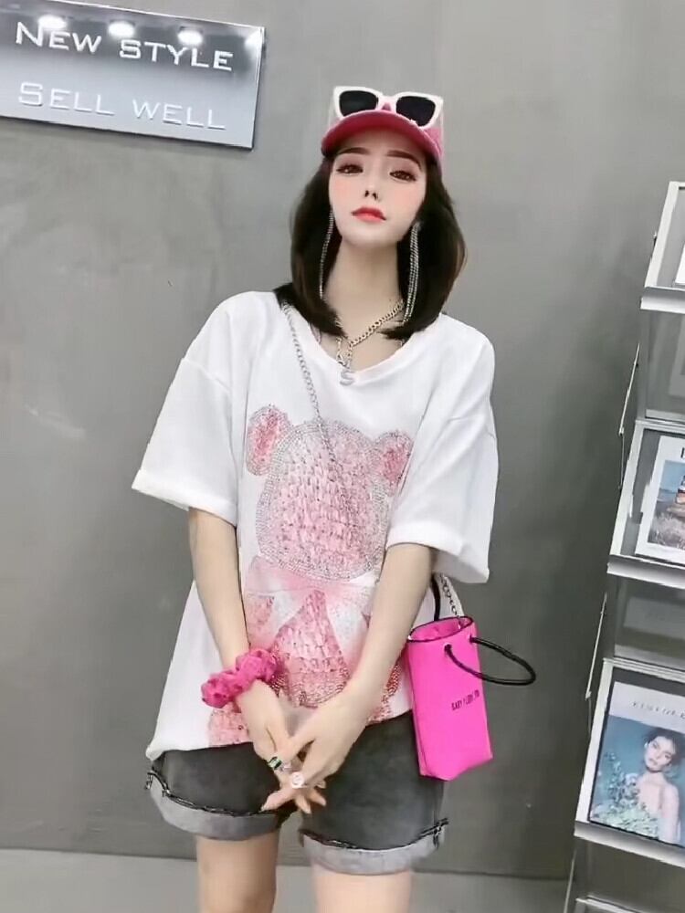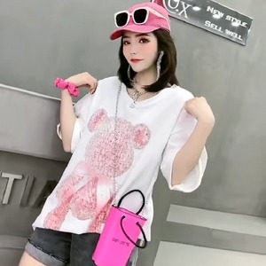 Tシャツ ルーズサマーレディーストップス 大きめサイズ 夏物 ミックスインファッション25312579039