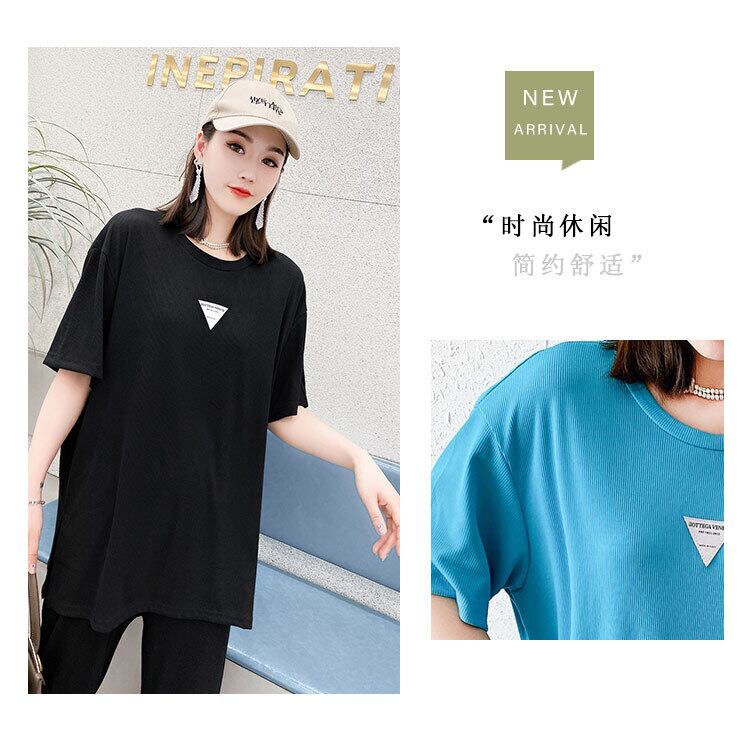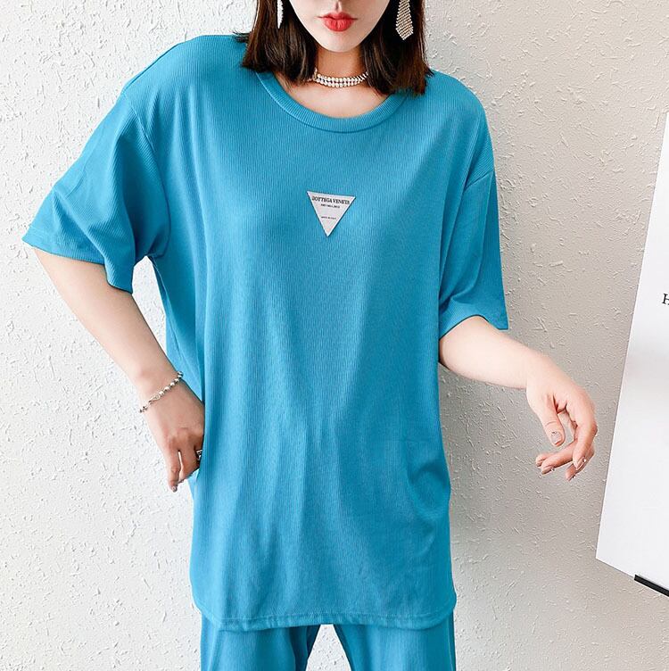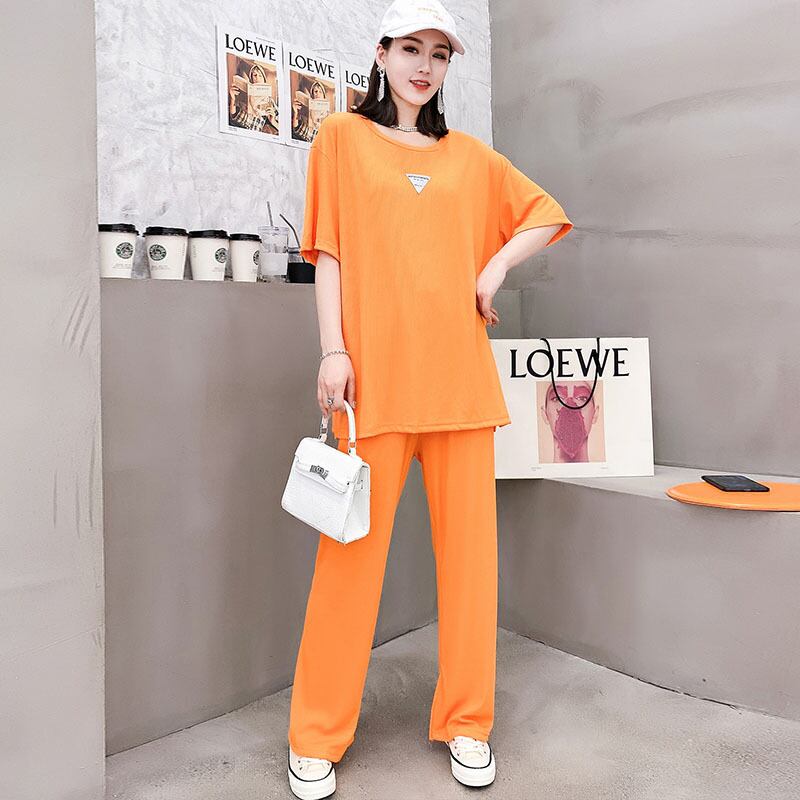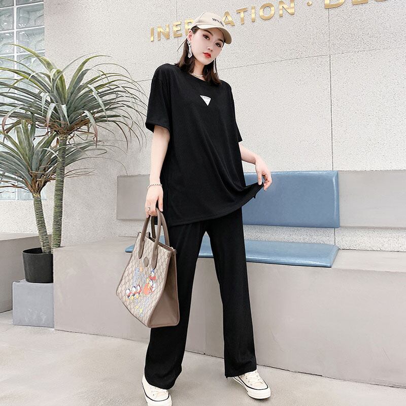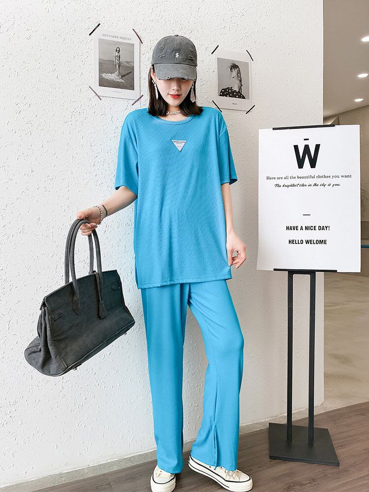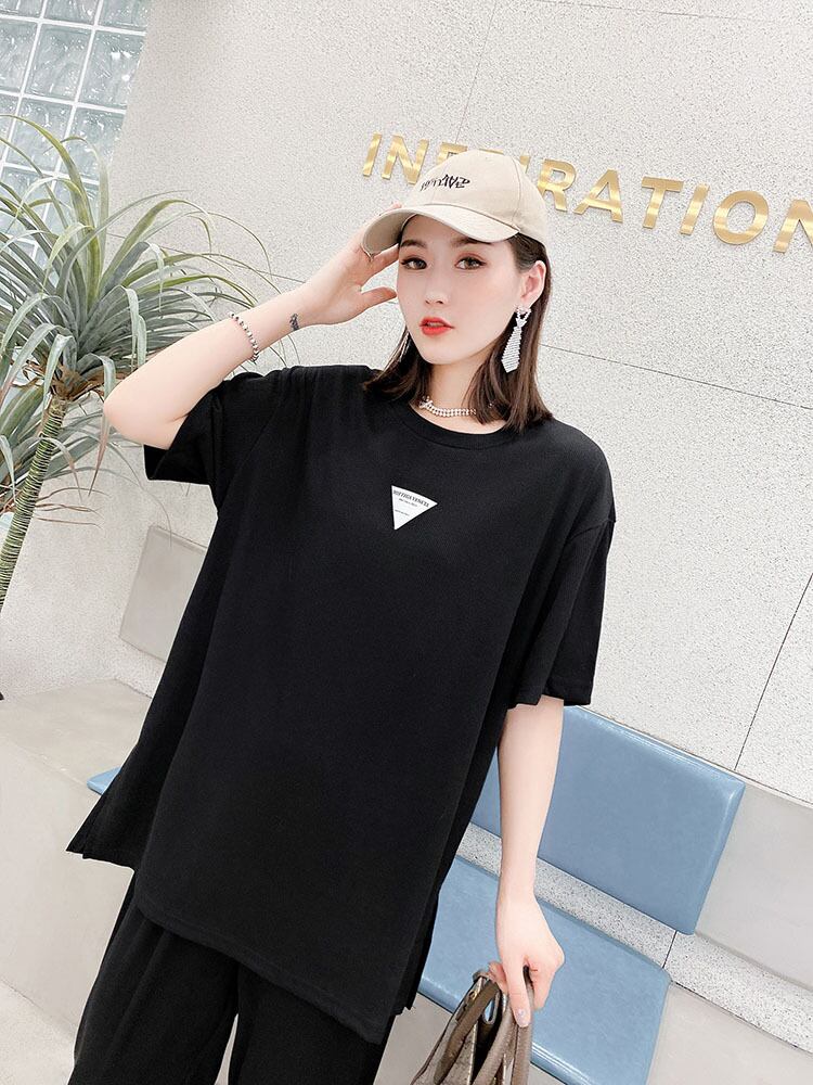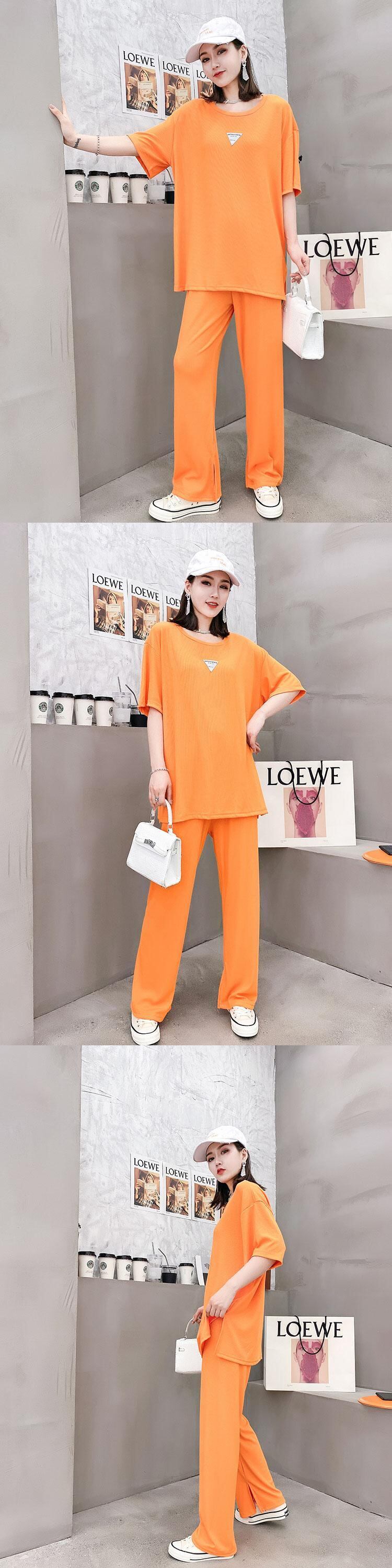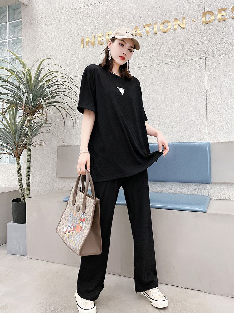 サマーカジュアルTシャツ ワイドレッグパンツ ストリート 大きめサイズ 夏物 ワイドパンツ ミックスインファッション1229060034