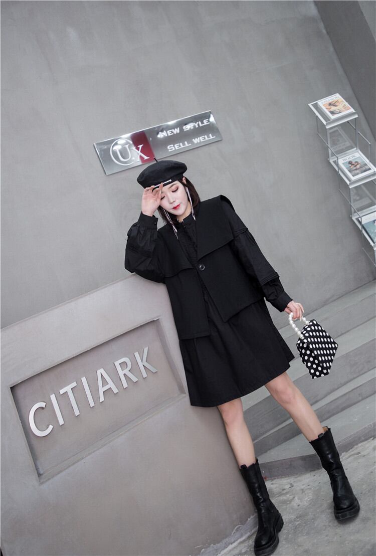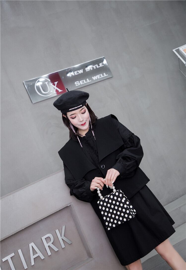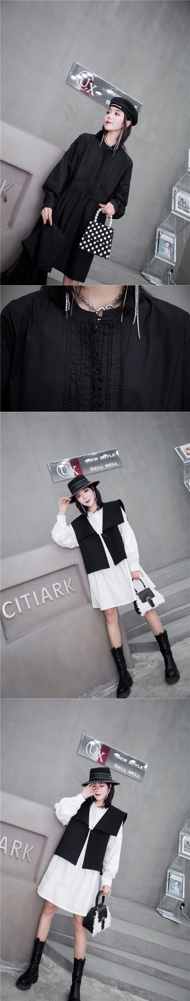 色:黒のベストと白のスカートのツーピーススーツ,黒のベストと黒のドレスのツーピーススーツ