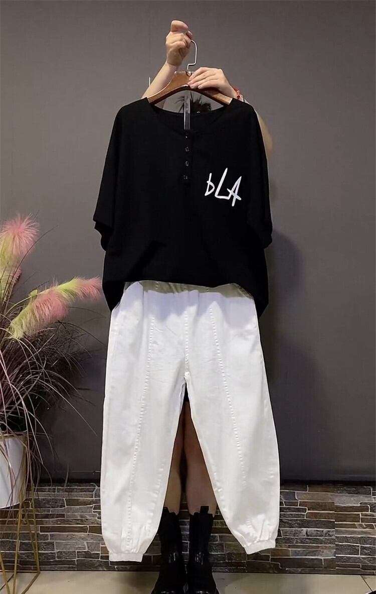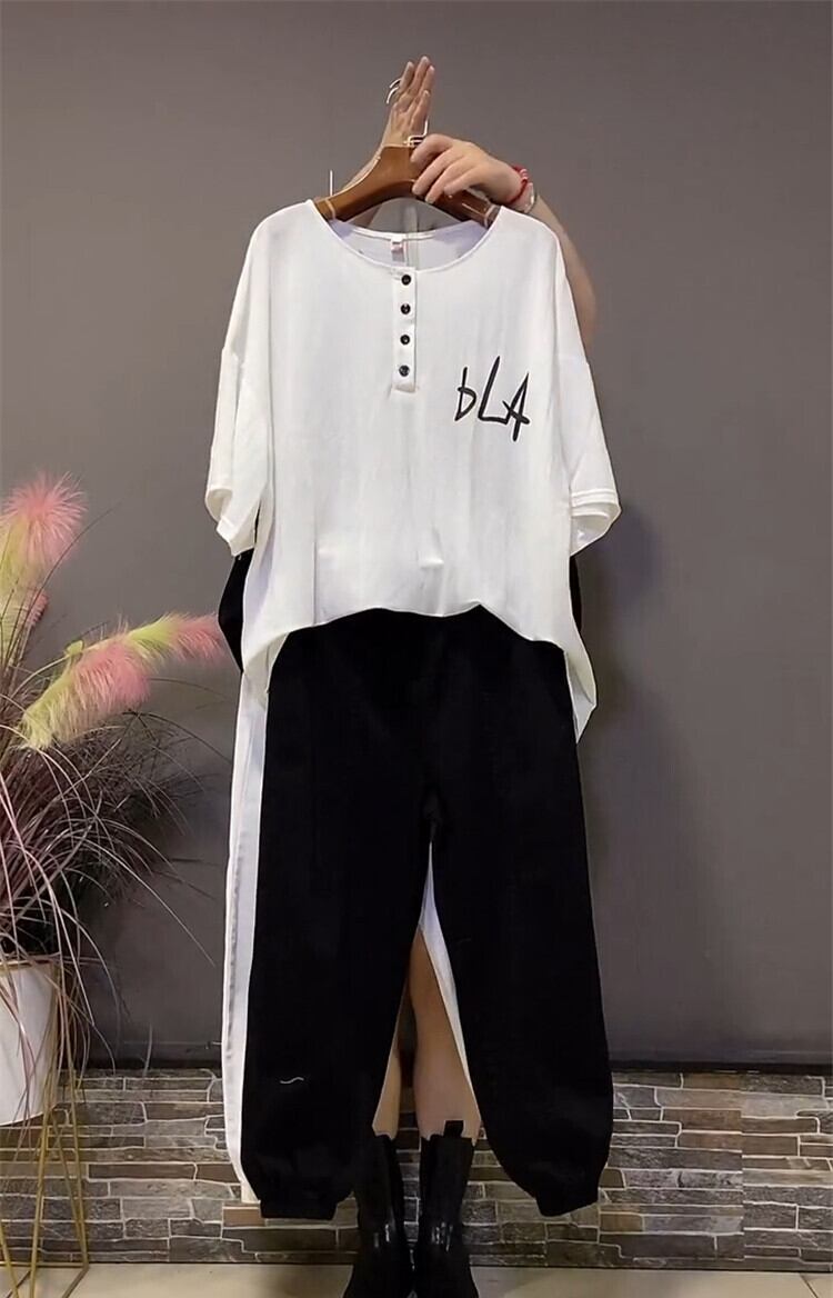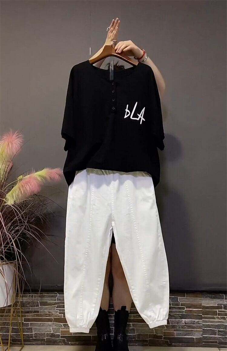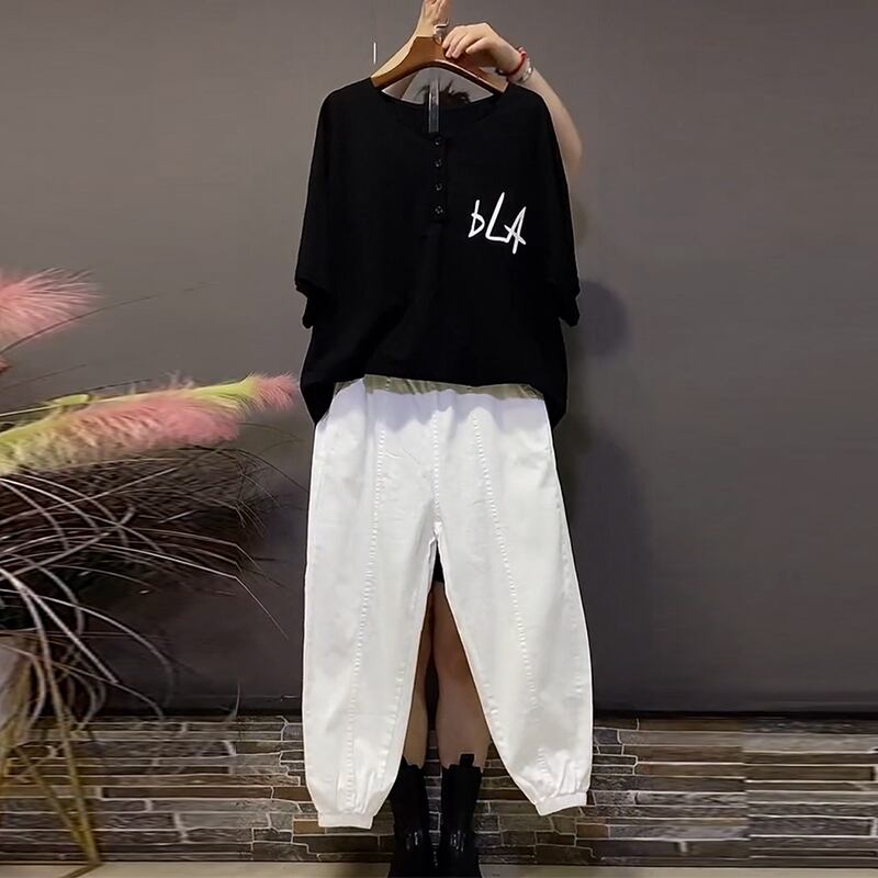 プルオーバー ラウンドネックTシャツ ルーズカジュアルパンツ 大きめサイズ Oネック ミックスインファッション39044196711