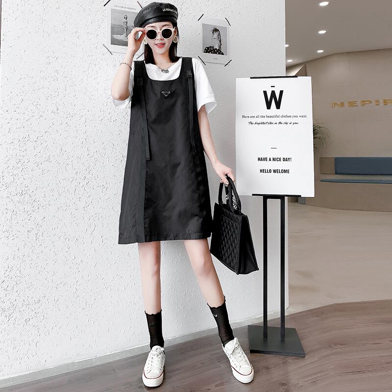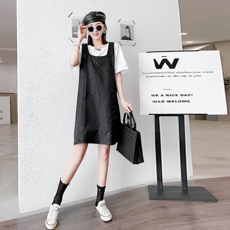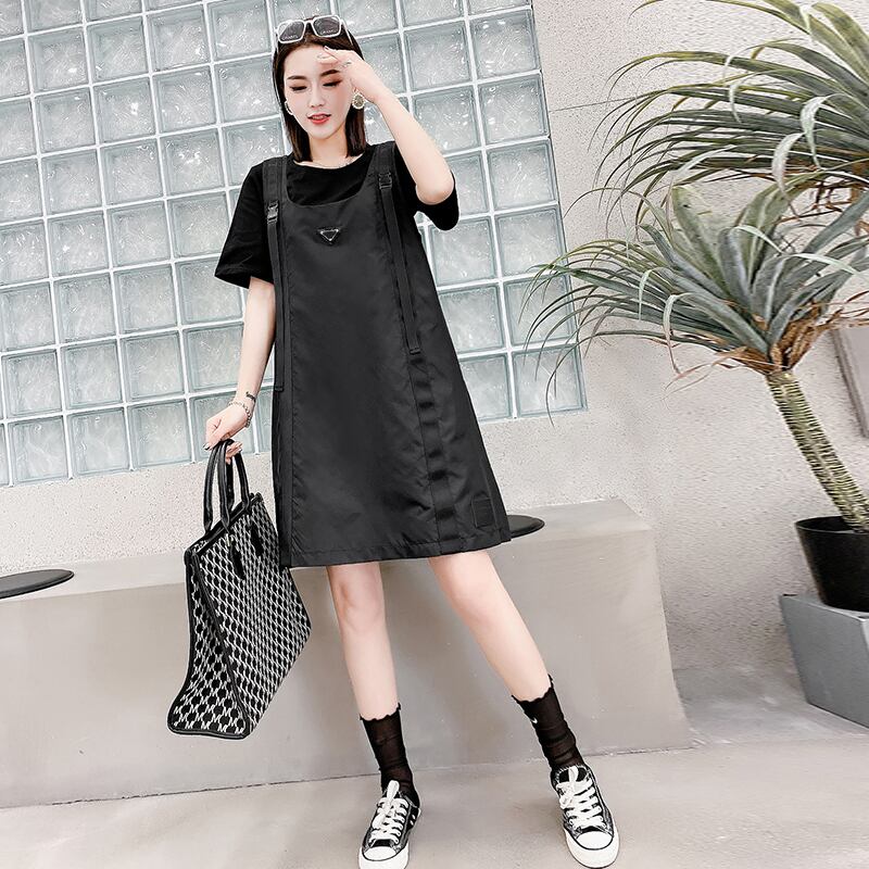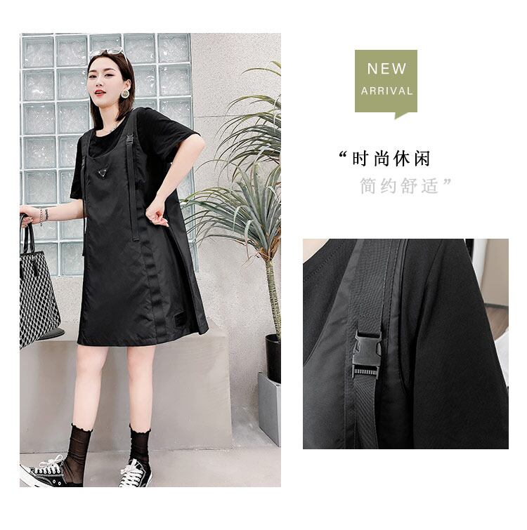 スプリングスタイル薄手Tシャツ スカート ドレス 大きめサイズ 春物 ミックスインファッション78801649830