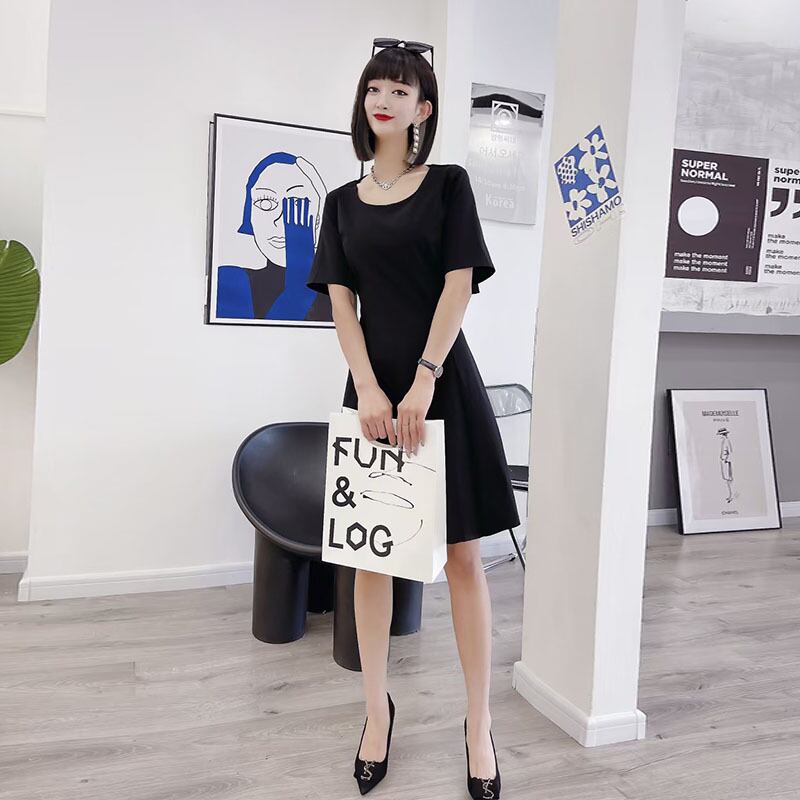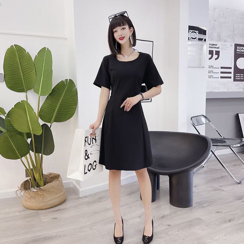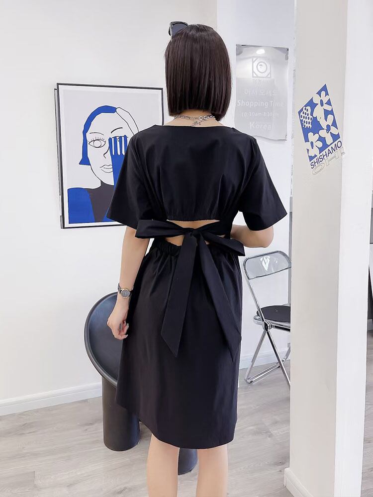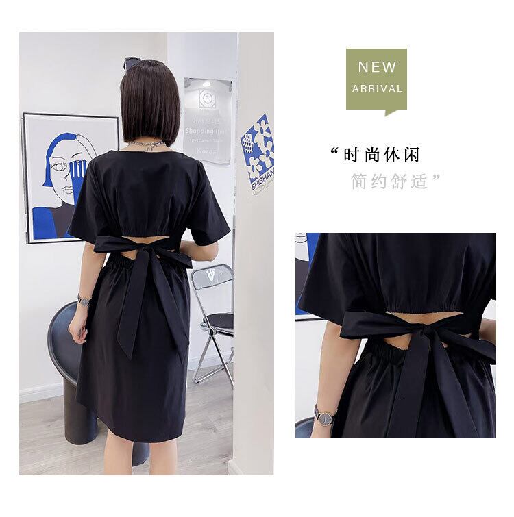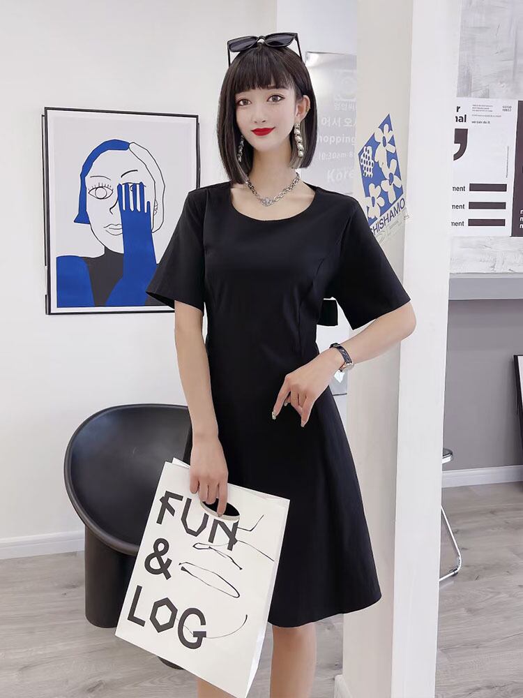 ラウンドネックバックリボンドレス サマースカート 大きめサイズ 夏物 Oネック ミックスインファッション44021788381