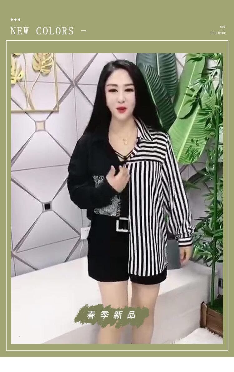 ブラウス スプリングルーズストライプシャツ ロング 大きめサイズ 春物 ステッチ ミックスインファッション95680724711
