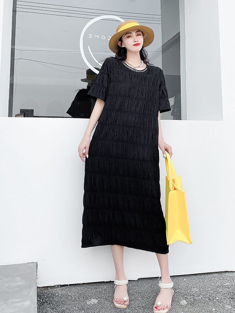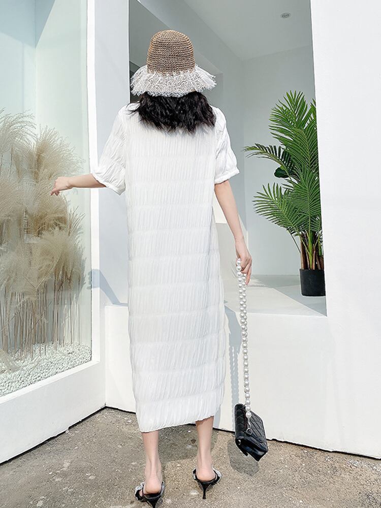 プリーツルーズドレス ウェストスカート 大きめサイズ ミックスインファッション24830506687